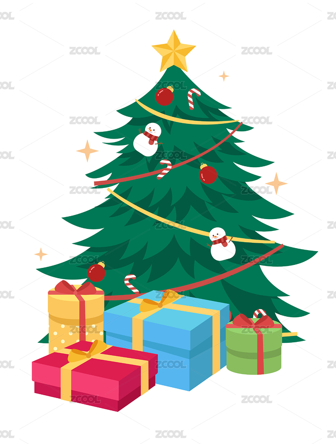 插画,圣诞节,圣诞,惊喜,圣诞树,礼物,礼盒,盒子,雪人,树