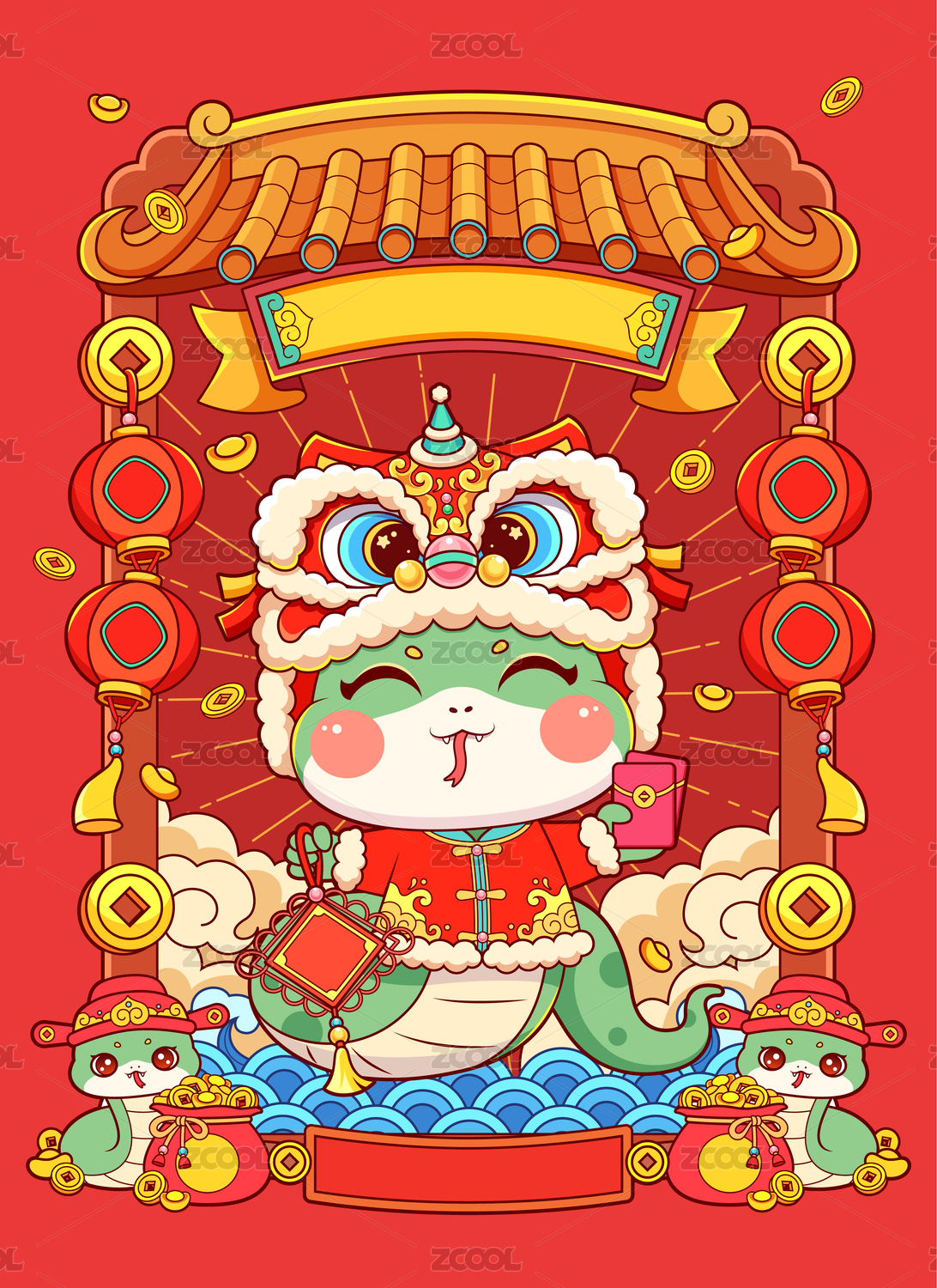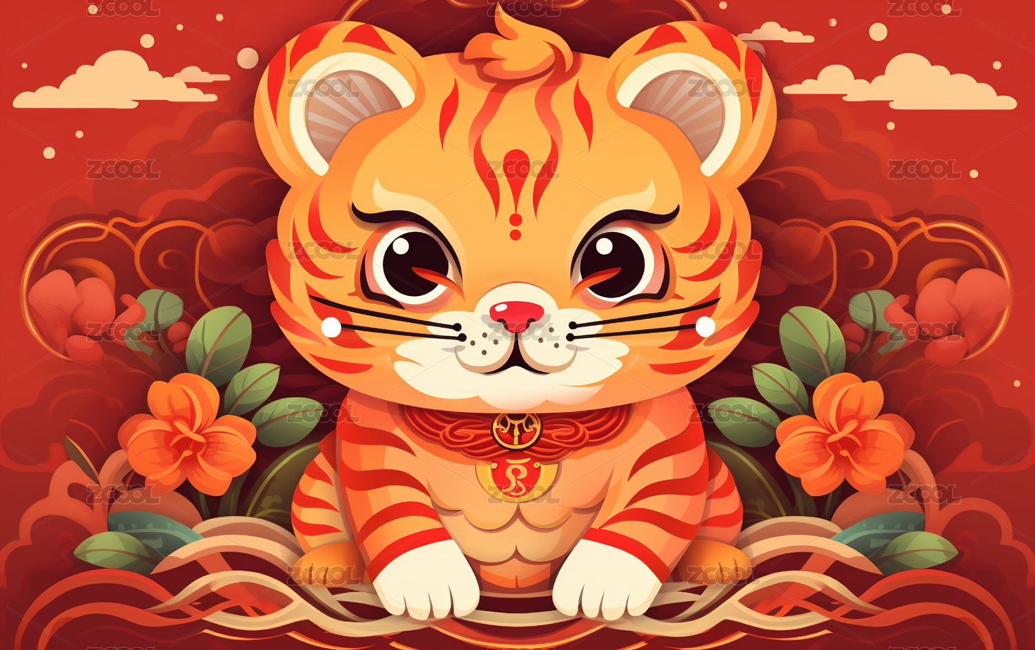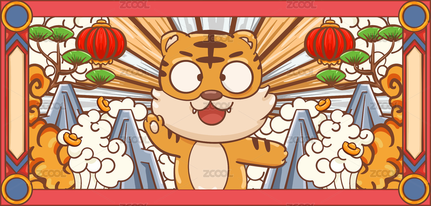 舞狮,醒狮,国潮,传统文化,老虎,虎年,新年,春节,新春,卡通