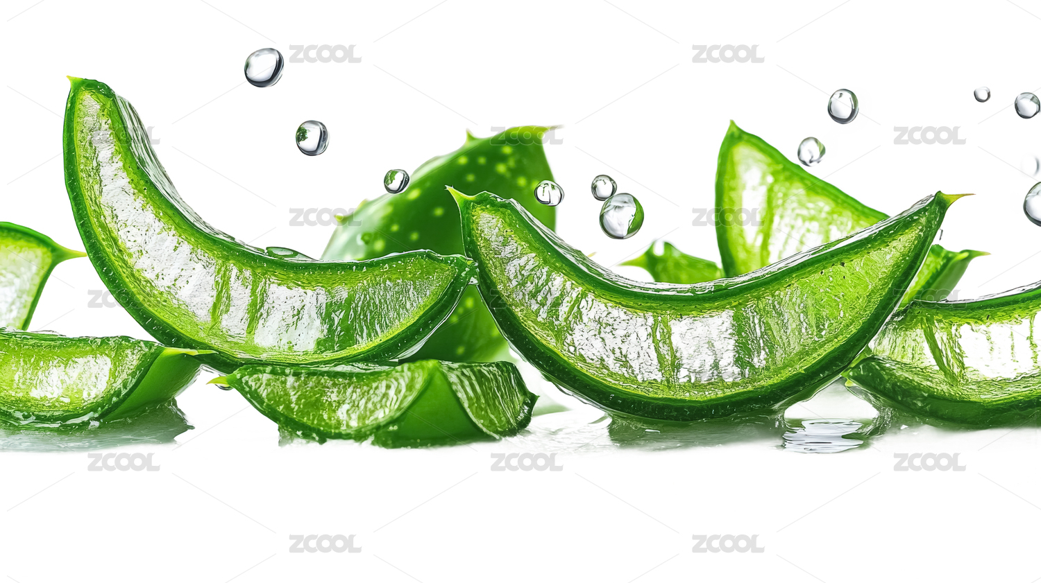 白底上放着新鲜芦荟