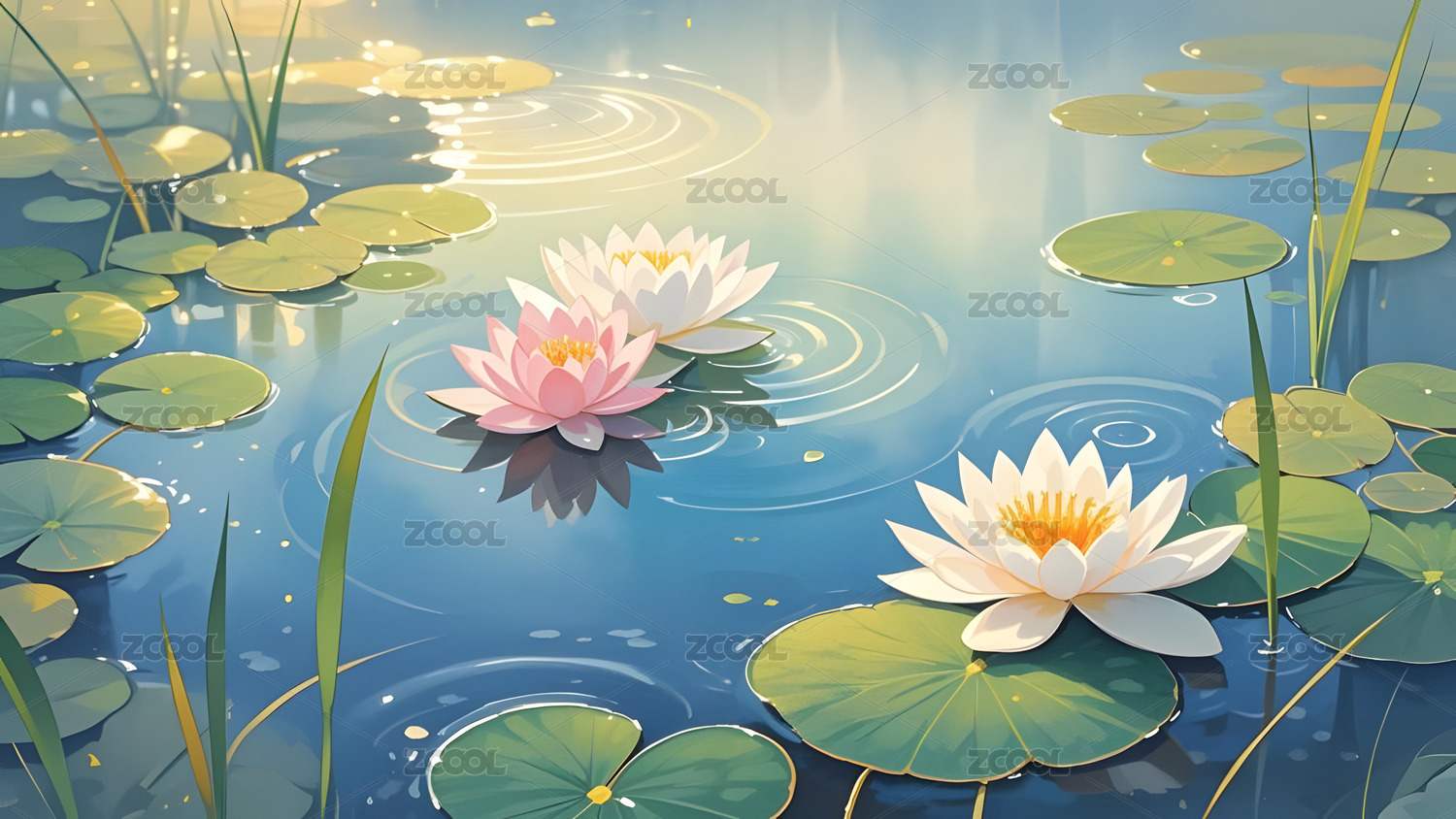 荷花,莲花,荷花池,荷塘,莲叶,荷叶,花瓣,蓝色,梦幻,优雅