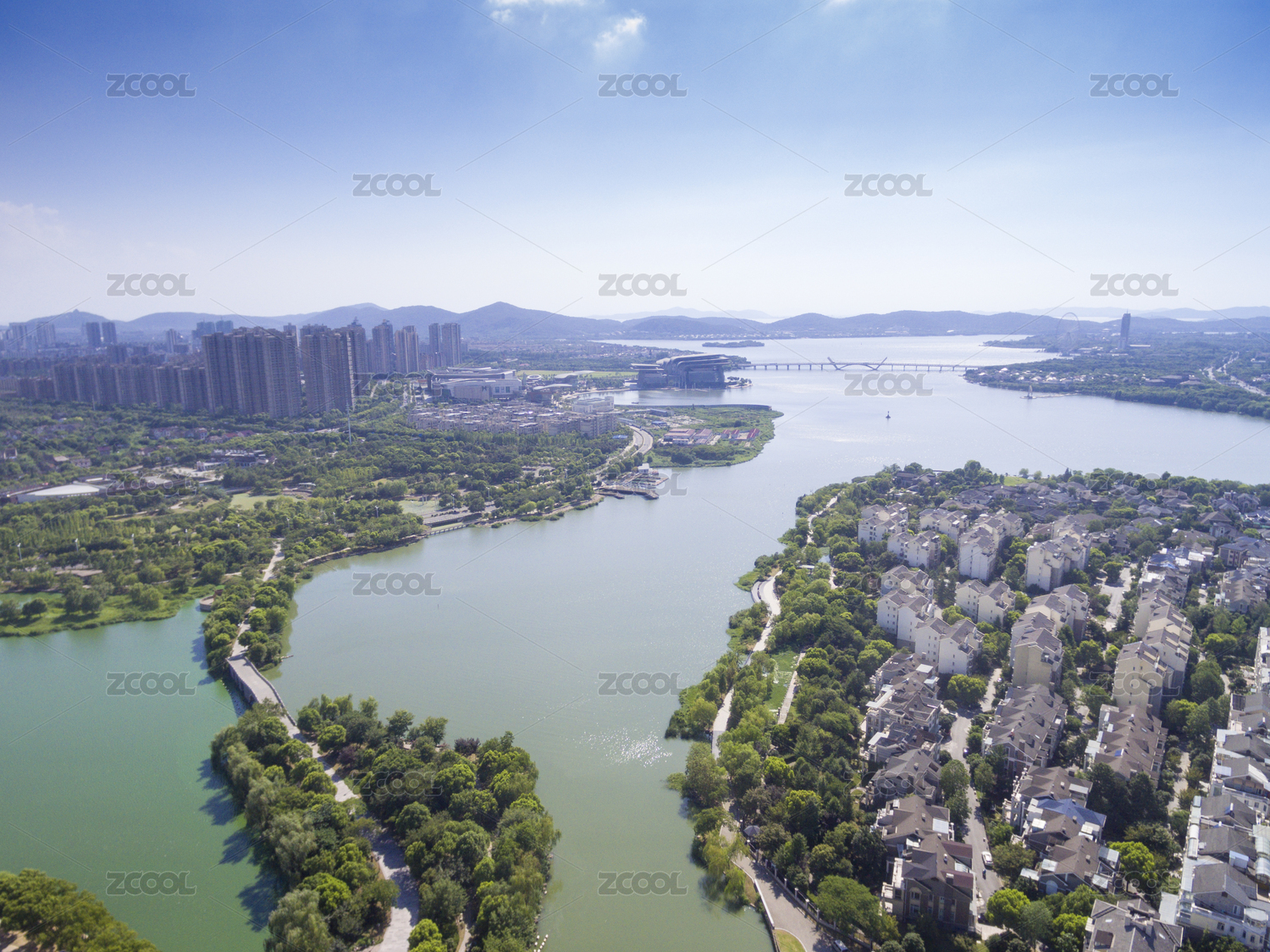 绍兴市柯桥区城市风光航拍,瓜渚湖湖滨公园