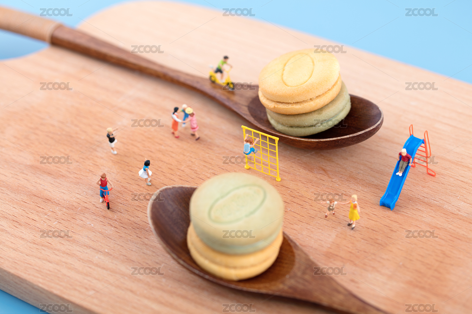 微缩创意饼干食物和玩耍的孩子