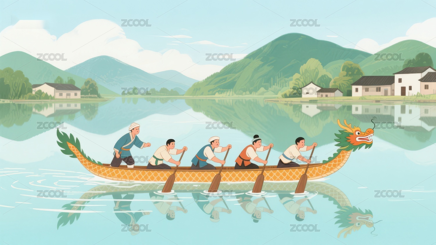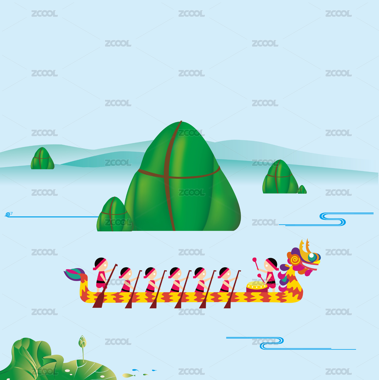 卡通手绘端午节粽子龙舟插图闪屏插画