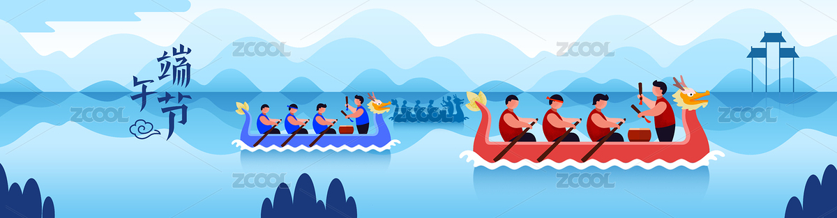 五月初五端午节快乐卡通粽子赛龙舟国潮插画