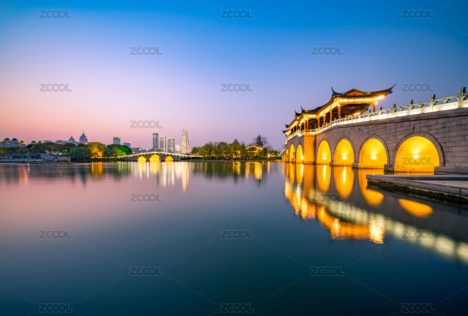 中国江苏扬州瘦西湖风景区五亭桥夜景
