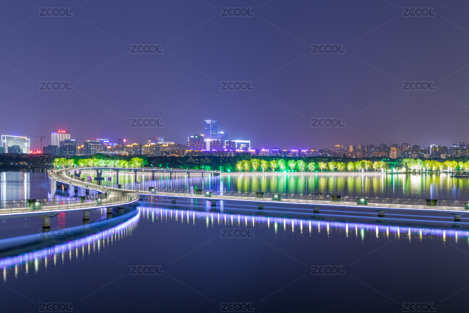 中国山东省东营市清风湖夜景