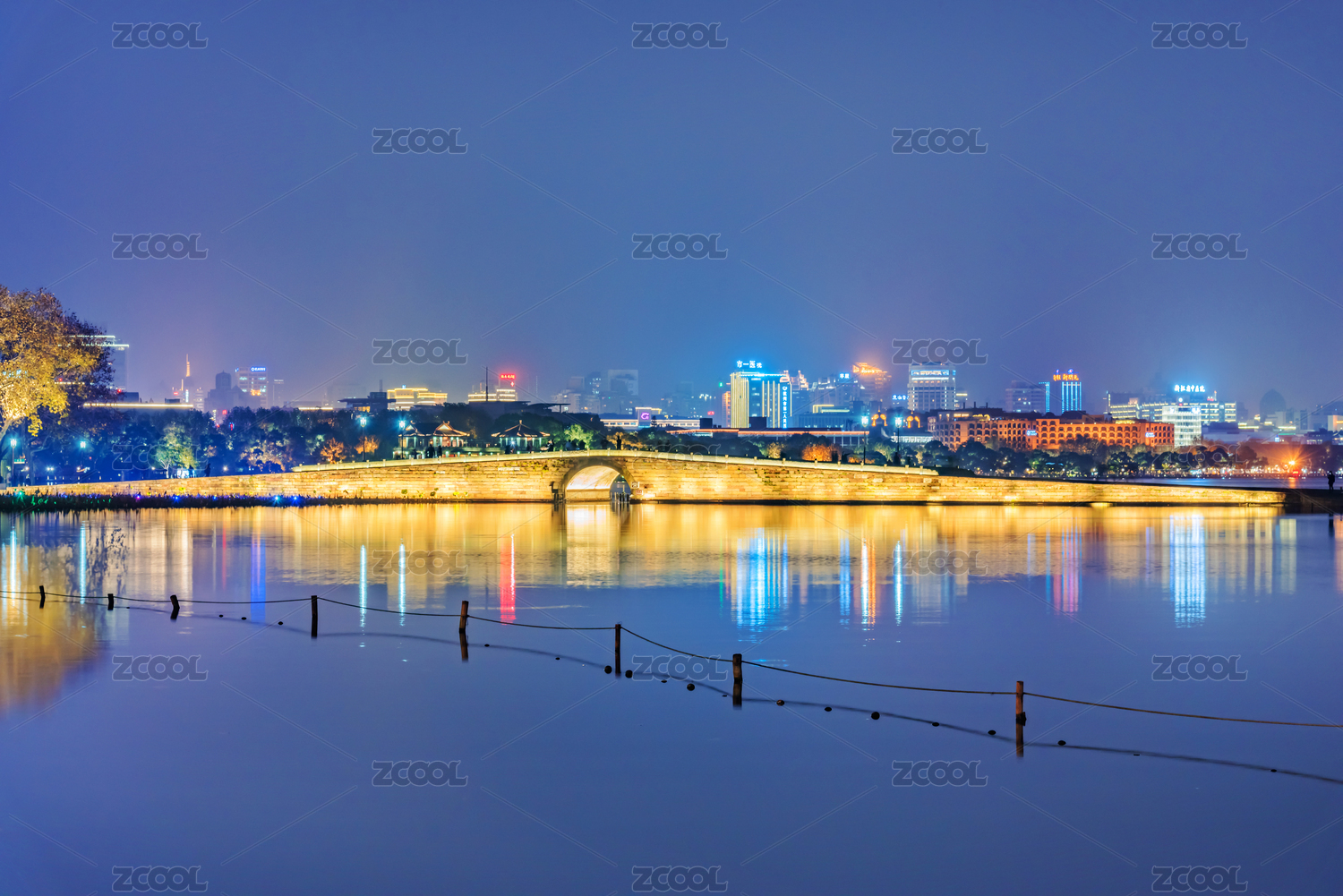 杭州西湖 断桥 夜景