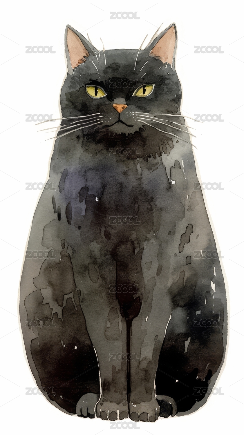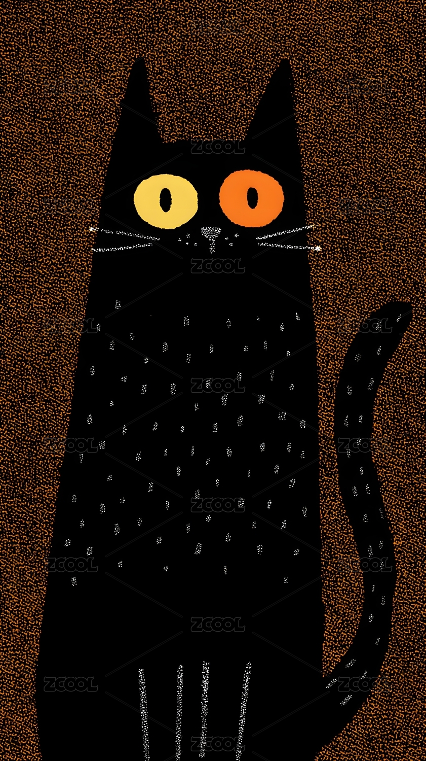 扁平小猫插画明亮一只可爱宠物猫绘画