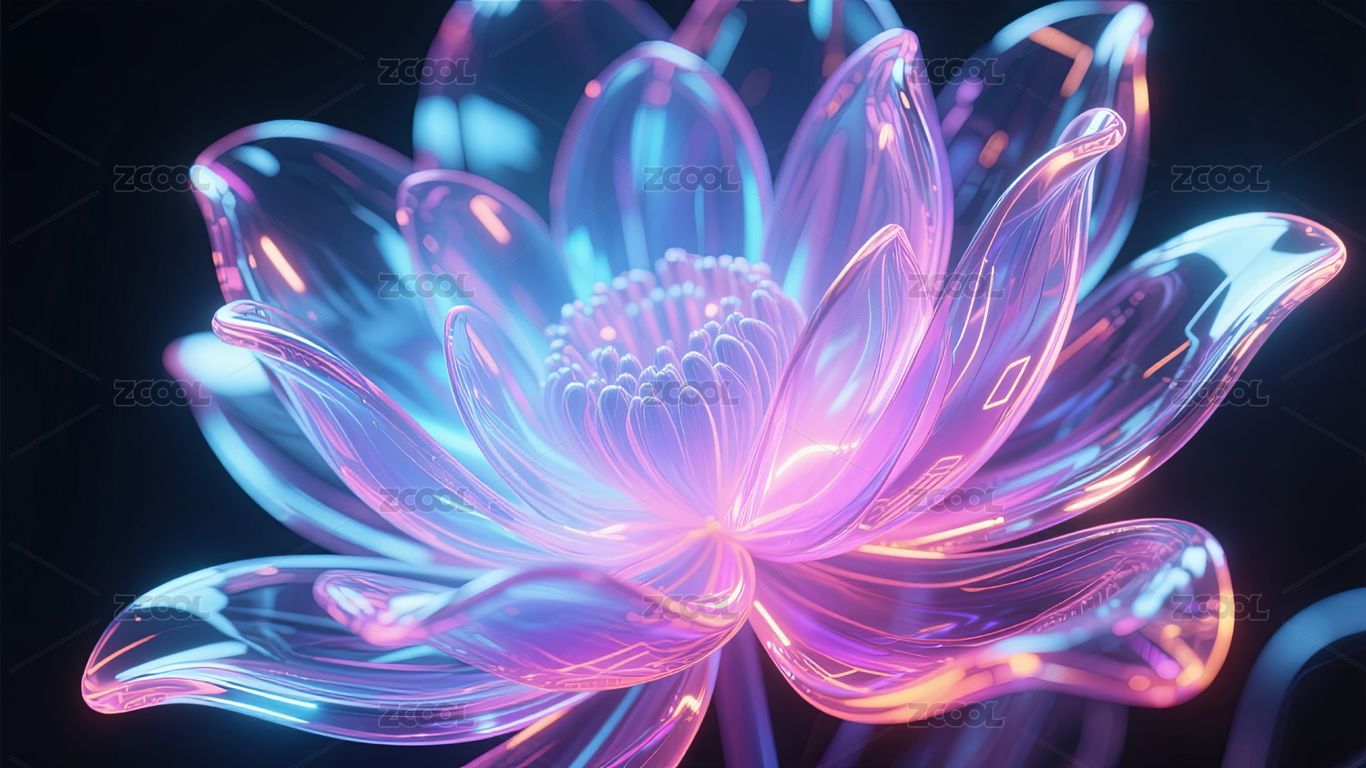 魔法发光睡莲在水塘中美丽盛开的特写插图