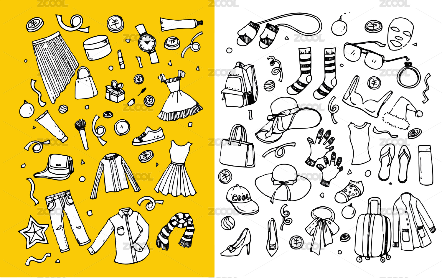 穿搭服饰时尚元素素材肌理森系装饰插画