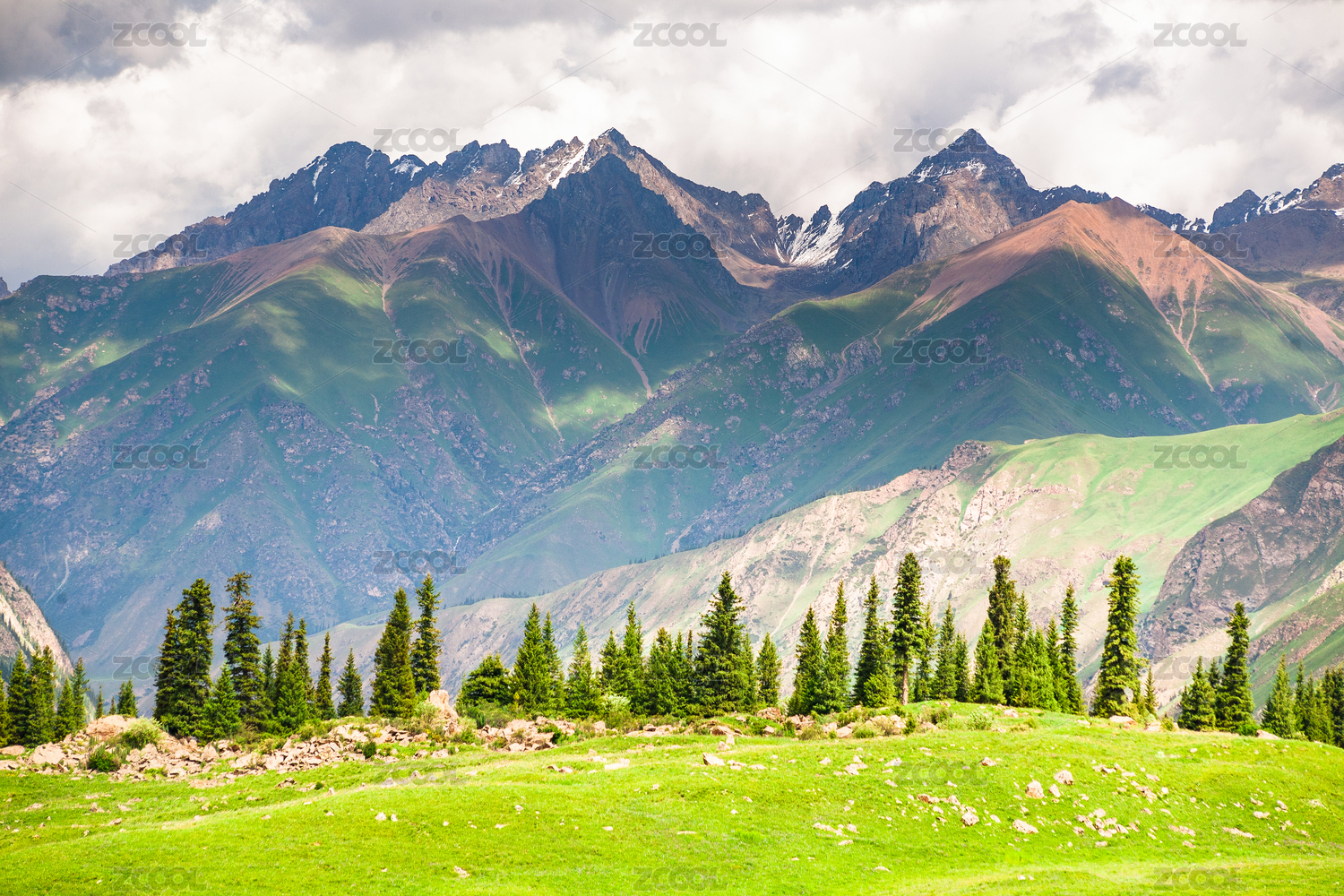 中国新疆伊犁夏塔雪山森林草原绝美风光