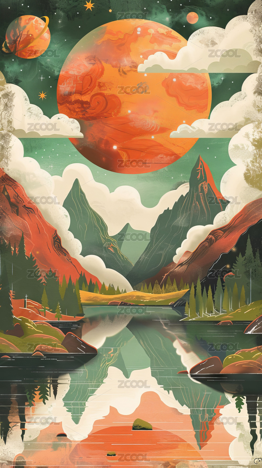 奇幻山脉星空湖景