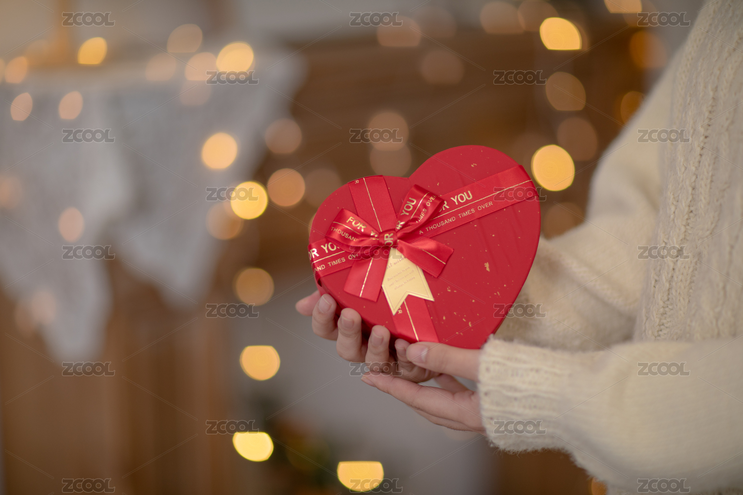 穿着白色毛衣的女孩打开礼物笑容灿烂