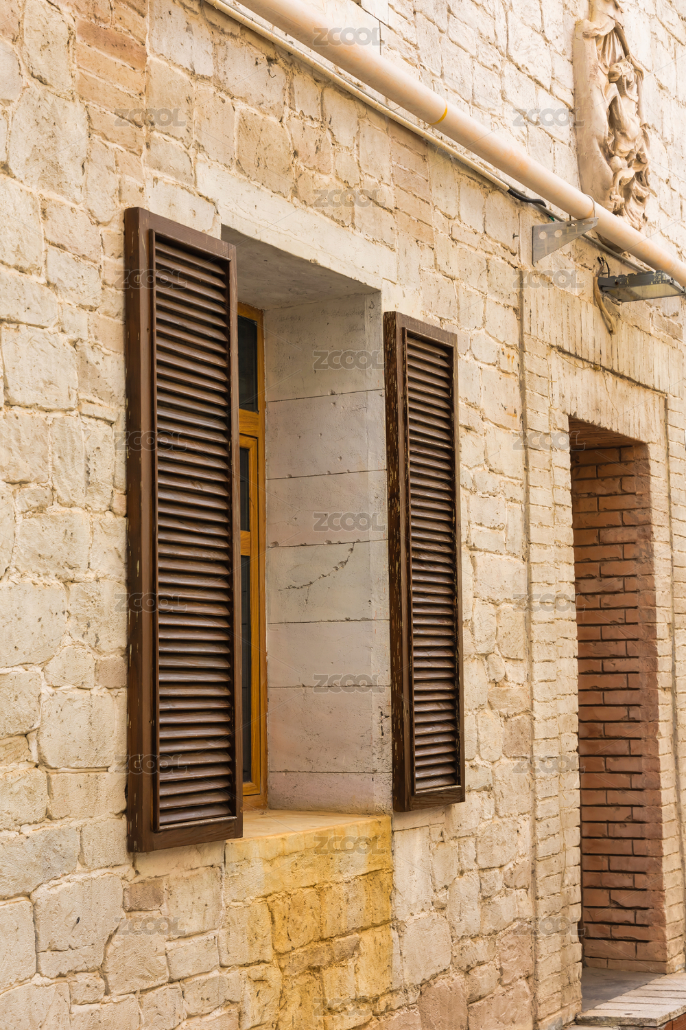 欧式古代砖墙墙面或水泥墙背景和木质门窗