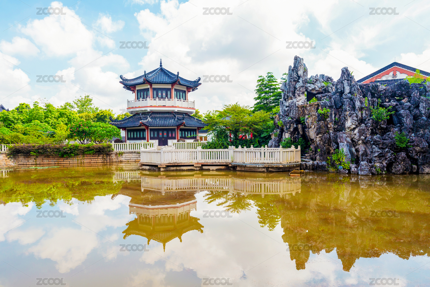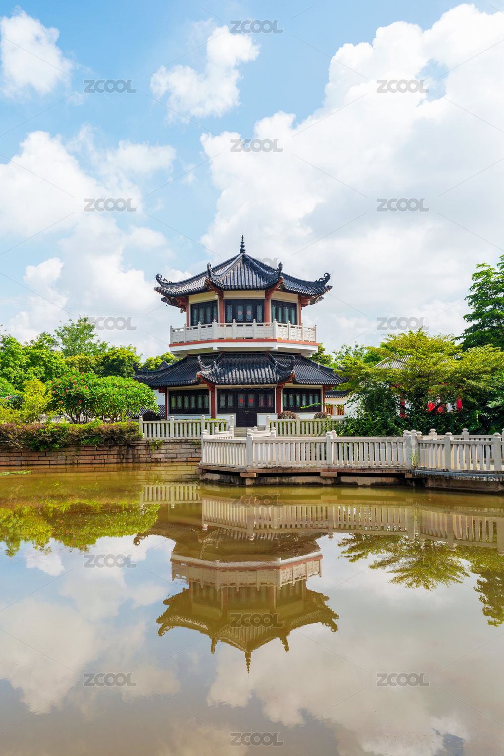 广州市花都湖国家湿地公园岭南园,月影通楼