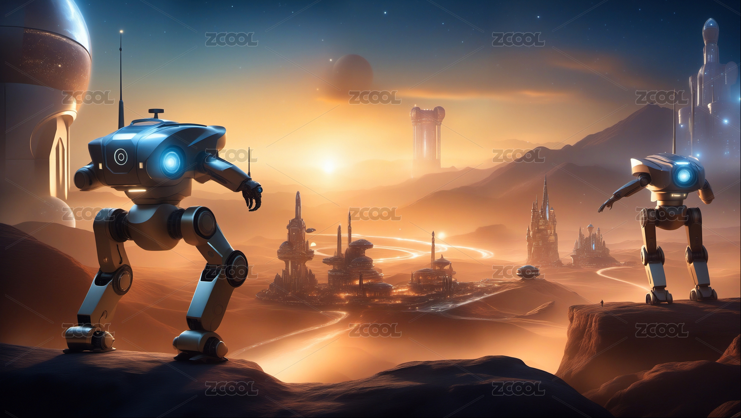 黑色科幻飞船沙漠
