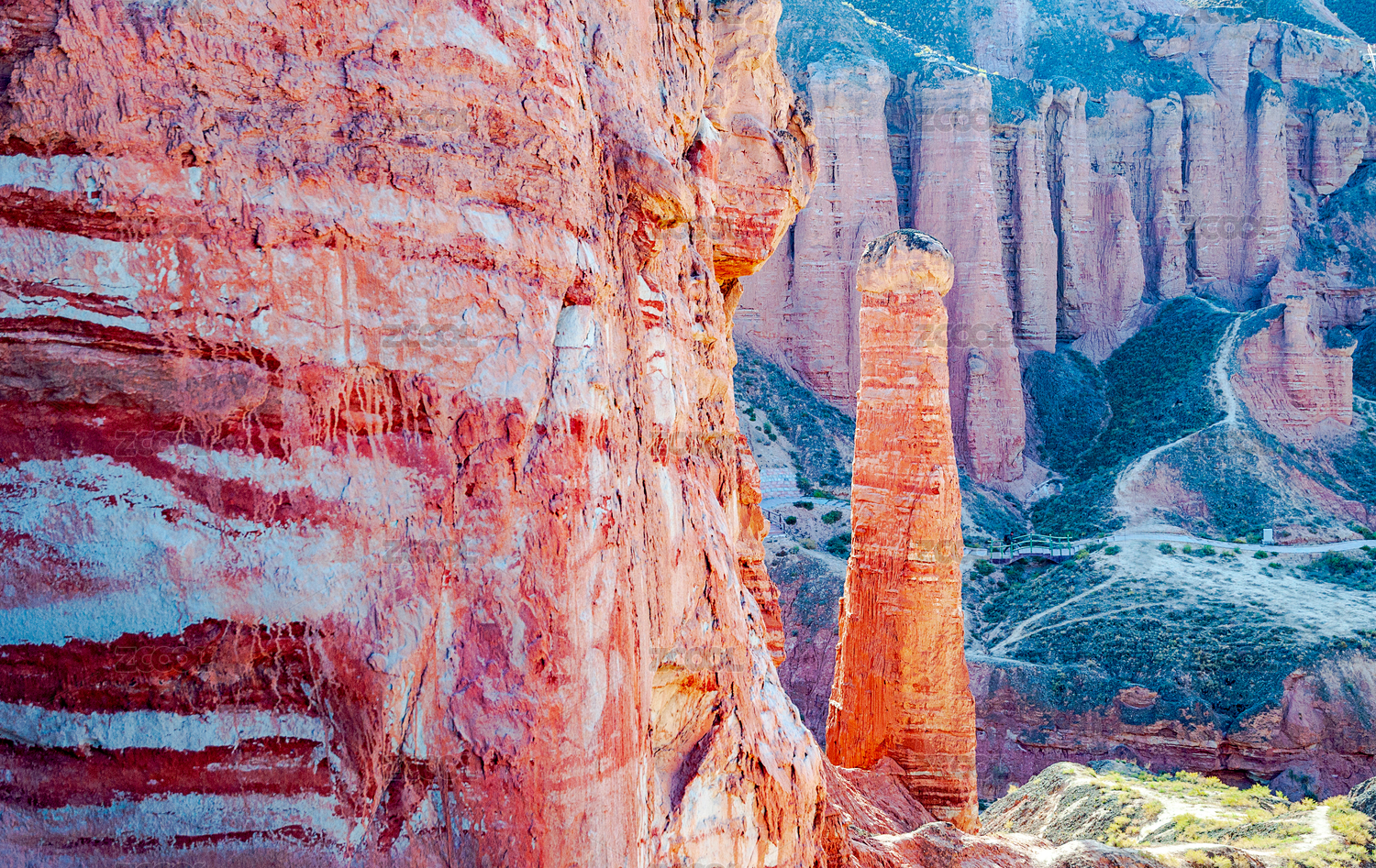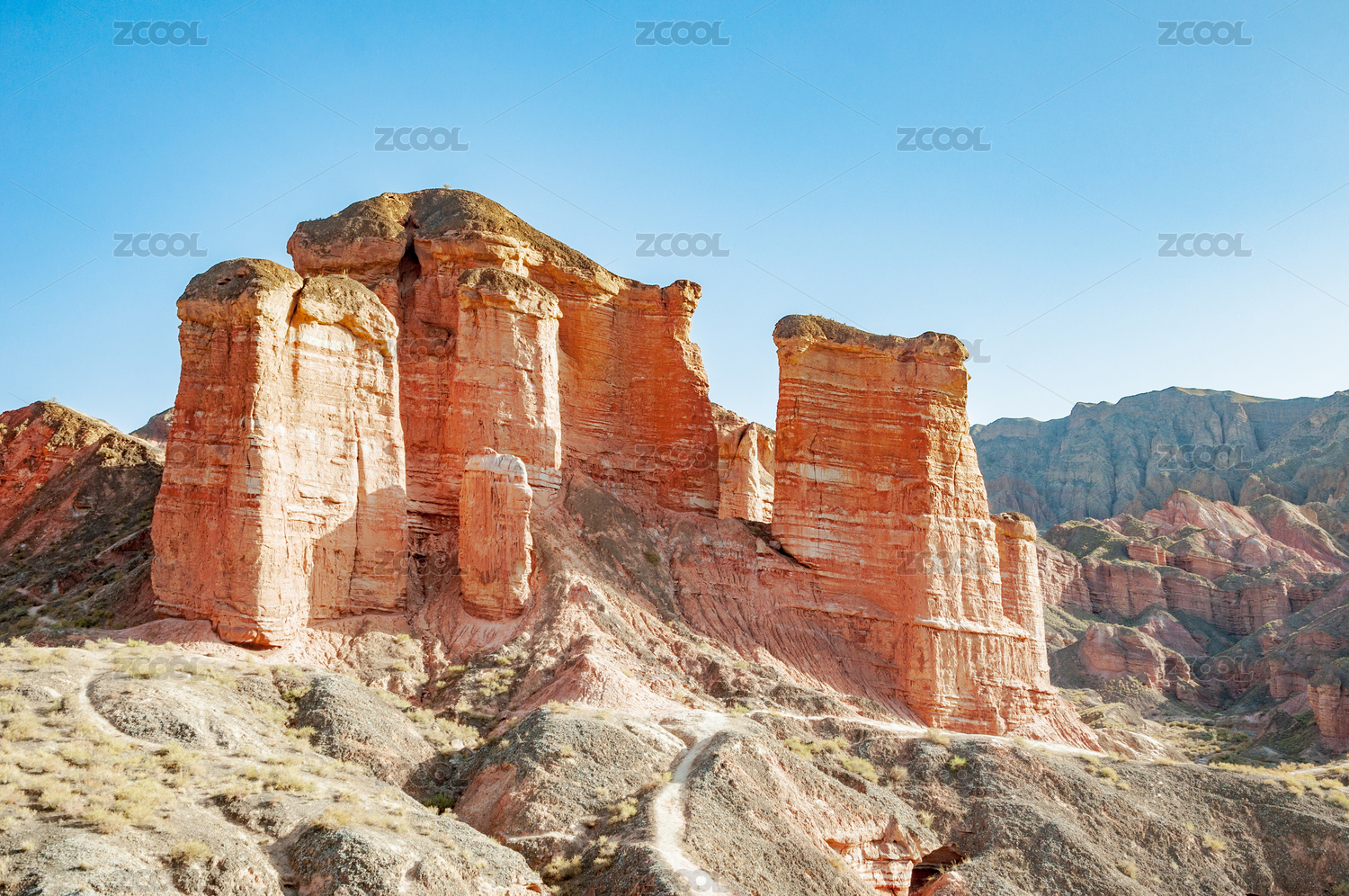 甘肃,张掖,冰沟丹霞,丹霞,肃南裕固族自治县,旅游,秋天,晴天,石柱,红色