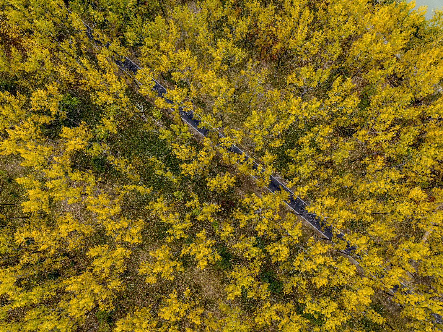 航拍中国内蒙古呼伦贝尔湿地秋季自然风光