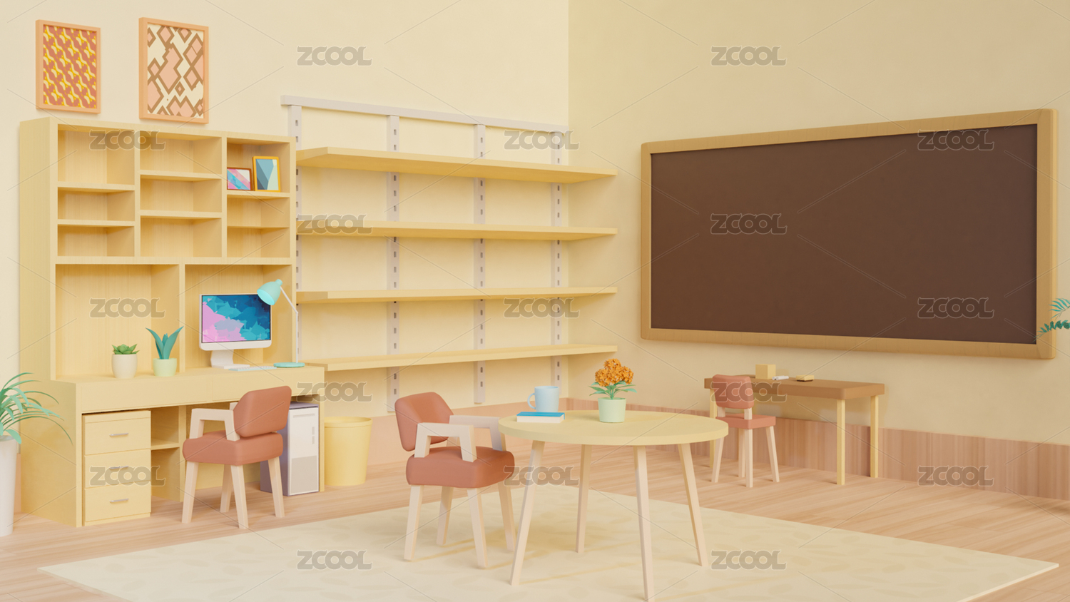 3D,书架,书桌,椅子,学习,自习,办公,打工人,教育,桌面美化