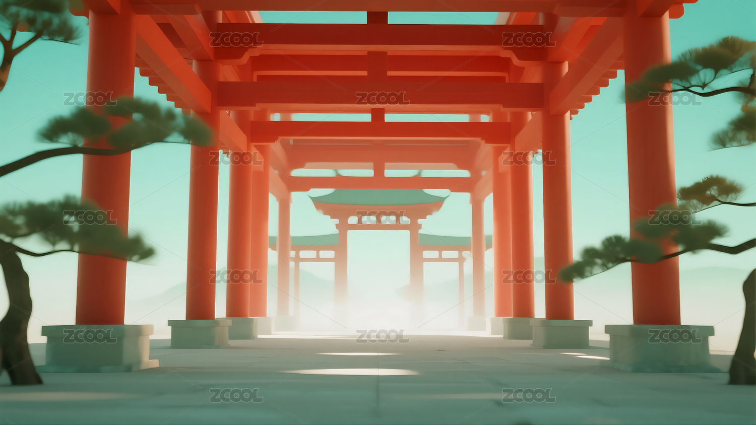 国风三维山水天空场景