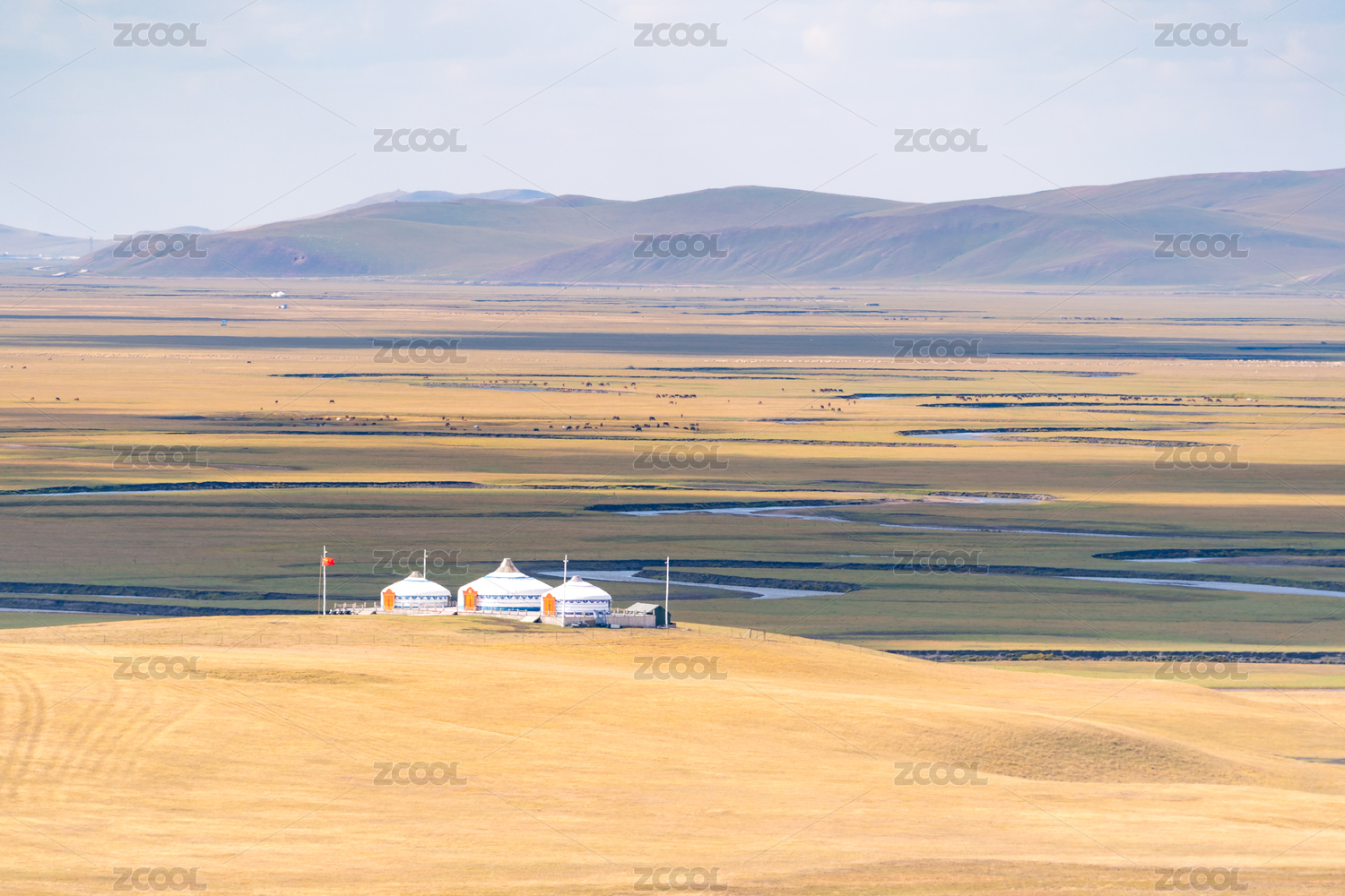 内蒙古呼伦贝尔大草原秋天蒙古包自然风景