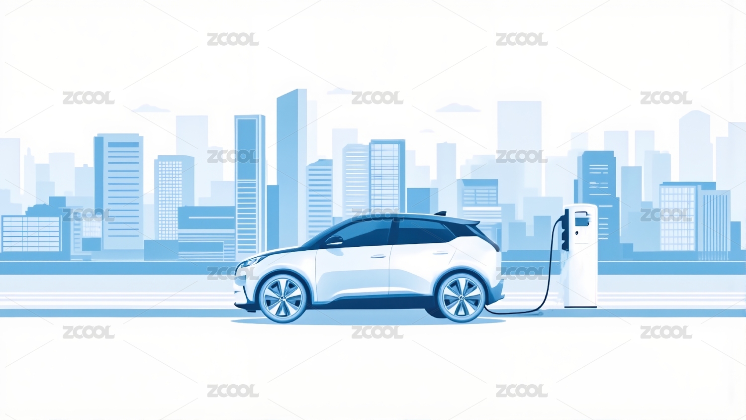 电车,新能源,环保,绿色,清洁,能源,充电,极简,汽车,插画