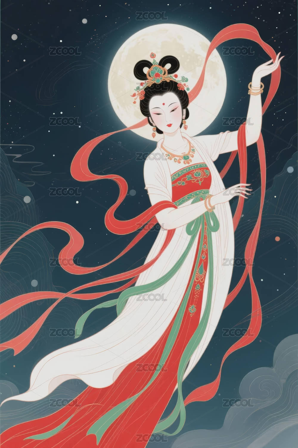 敦煌飞天嫦娥奔月唯美古风手绘插画