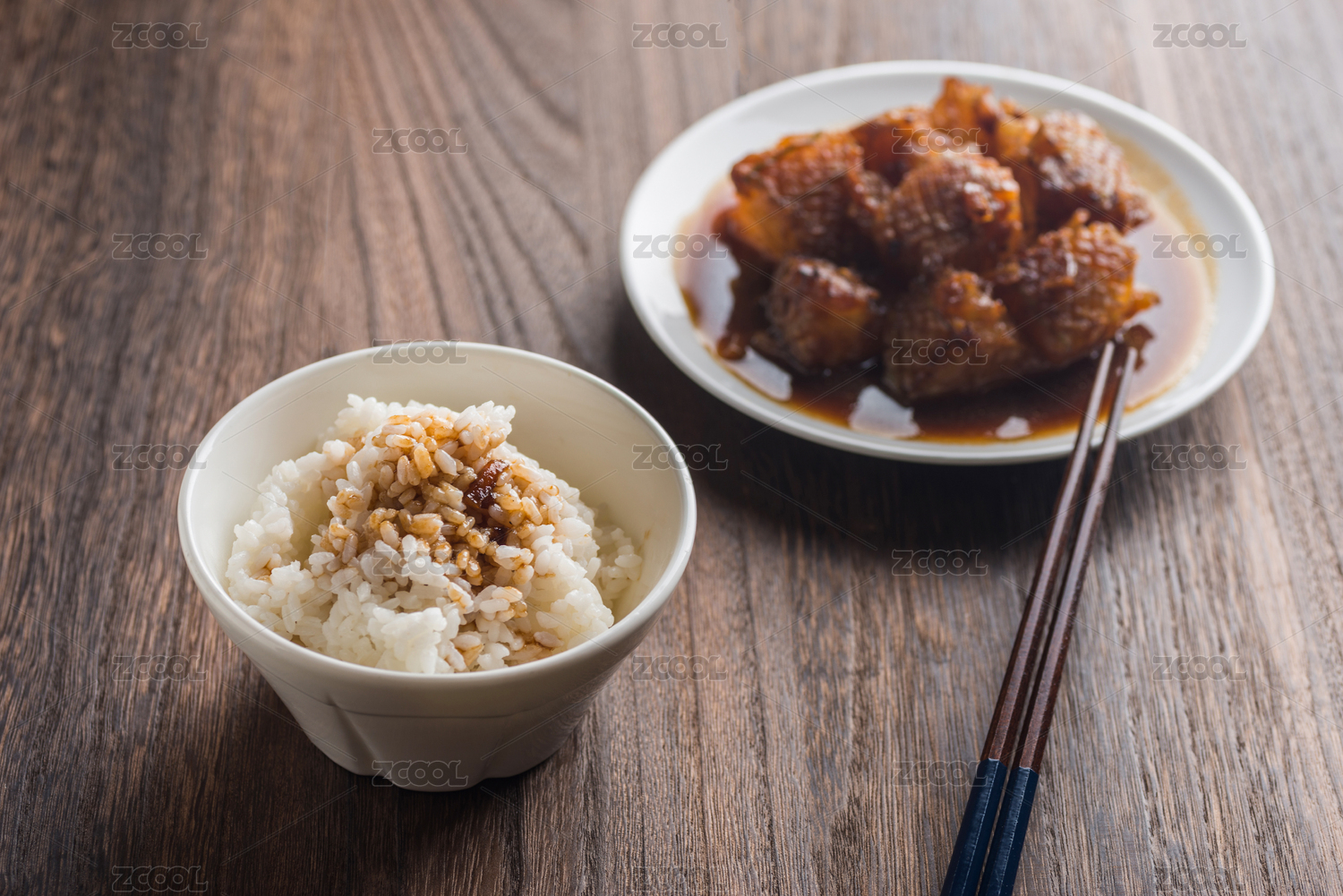 红烧冬瓜和一碗淋有汤汁的白米饭