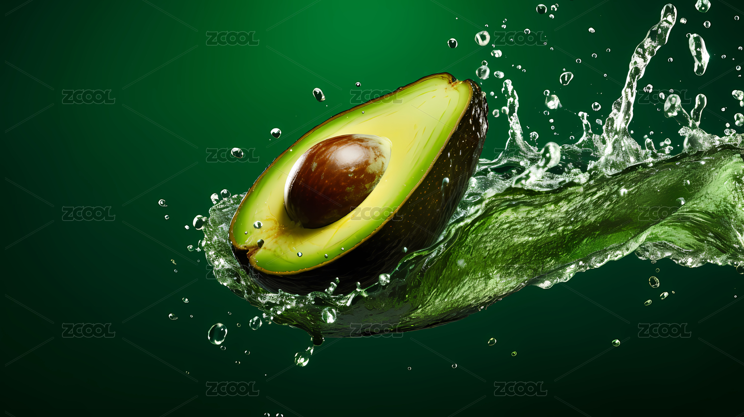 新鲜鳄梨水花四溅高清图片