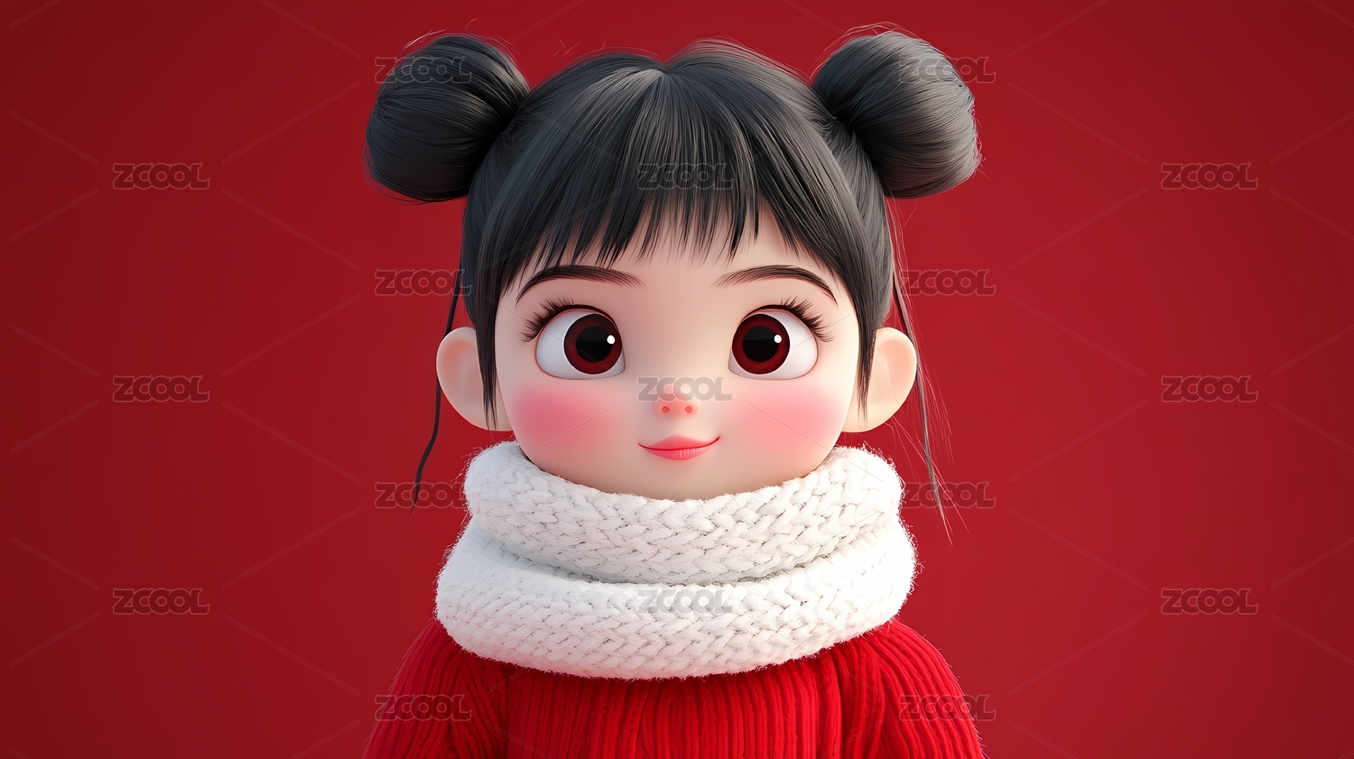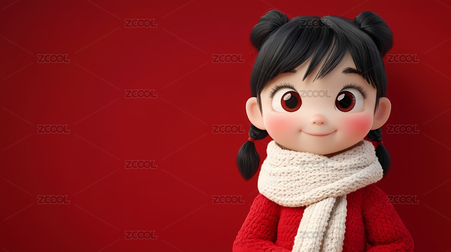 卡通,女孩,中国风,新年,春节,喜庆,红衣,可爱,插画,祝福