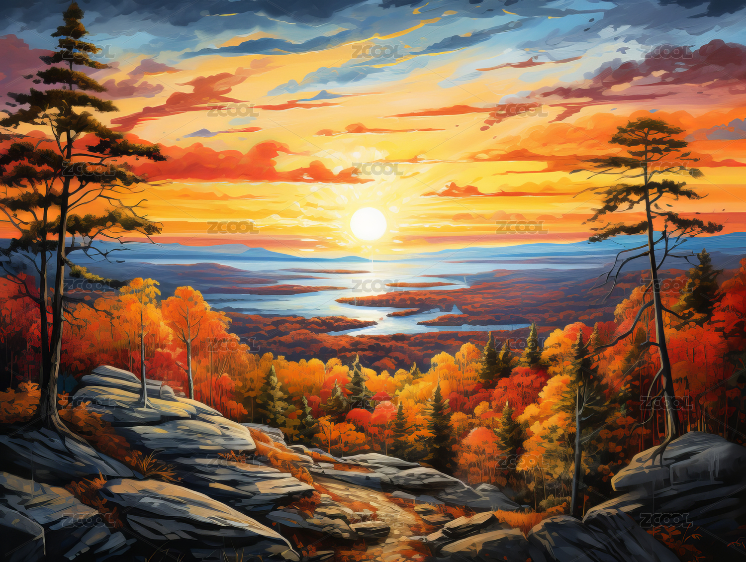 海边,落日,夕阳,日落,海景,海岸,金色,天空,云彩,树木
