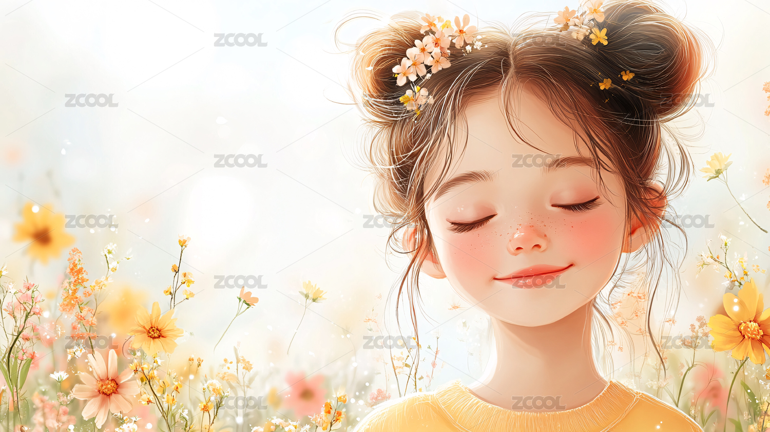 水彩,可爱,艺术,绘画,背景,人物,橙色,红色,花朵,温柔