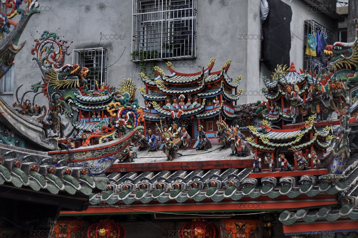 福建泉州道教寺庙关帝庙屋顶雕刻
