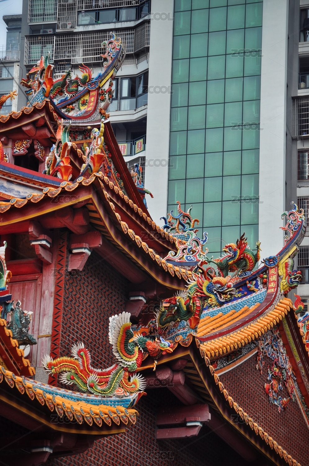泉州关帝庙中国传统古典建筑屋檐龙形嵌瓷工