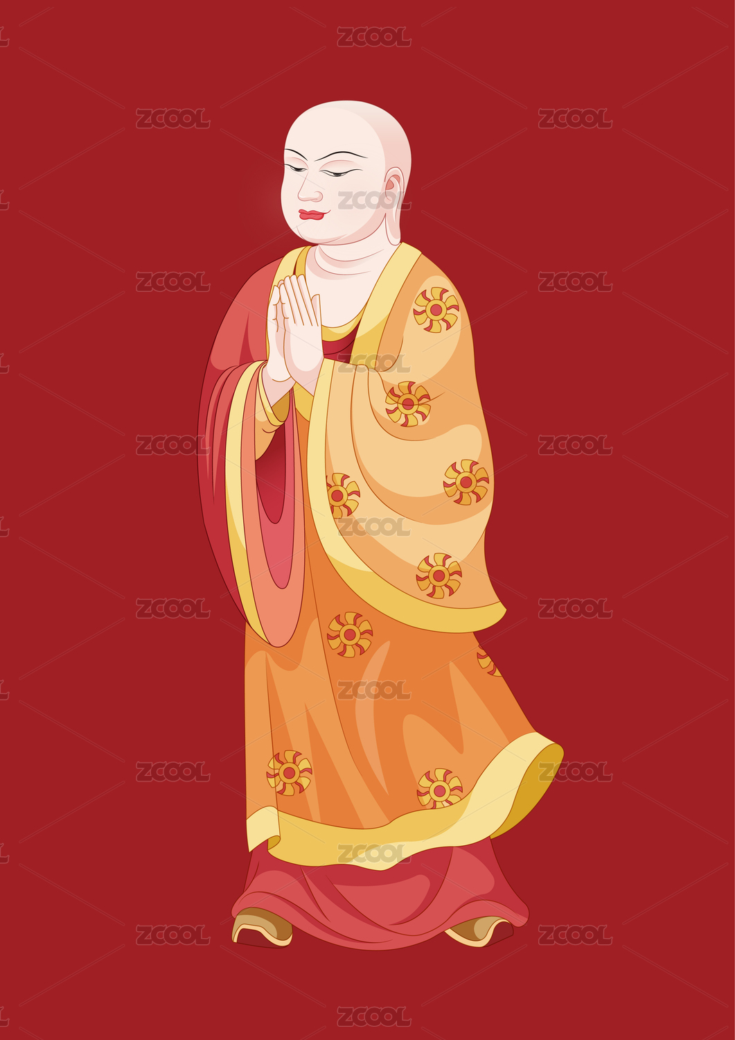 中式传统国潮风格佛像插画素材