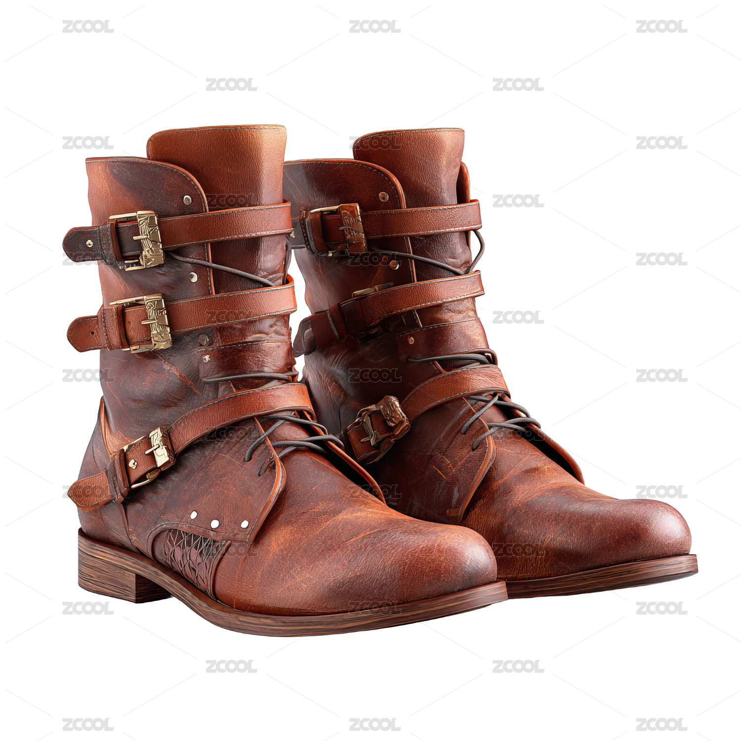 棕色多扣带皮革靴子