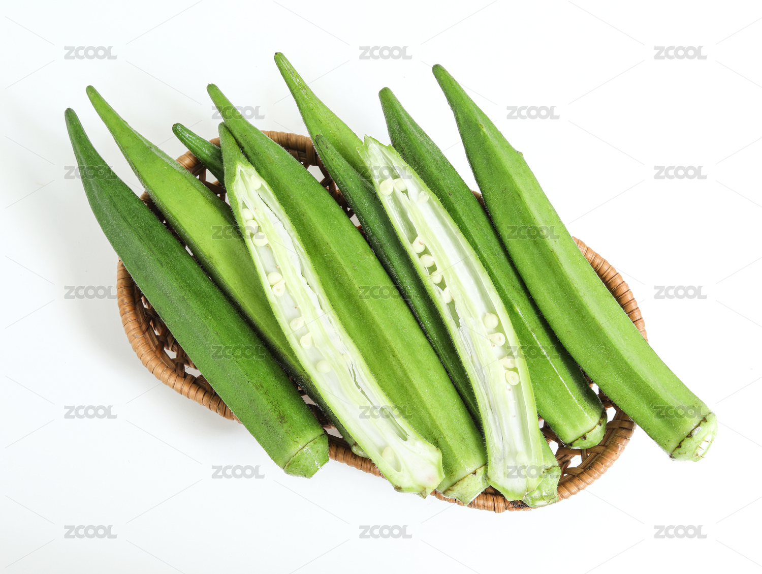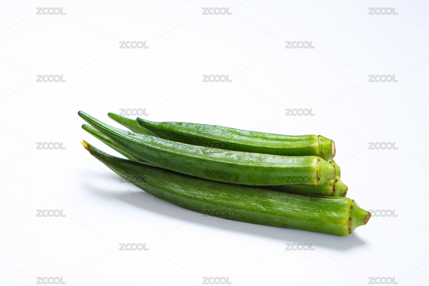 白色桌面上的一堆新鲜绿色蔬菜秋葵