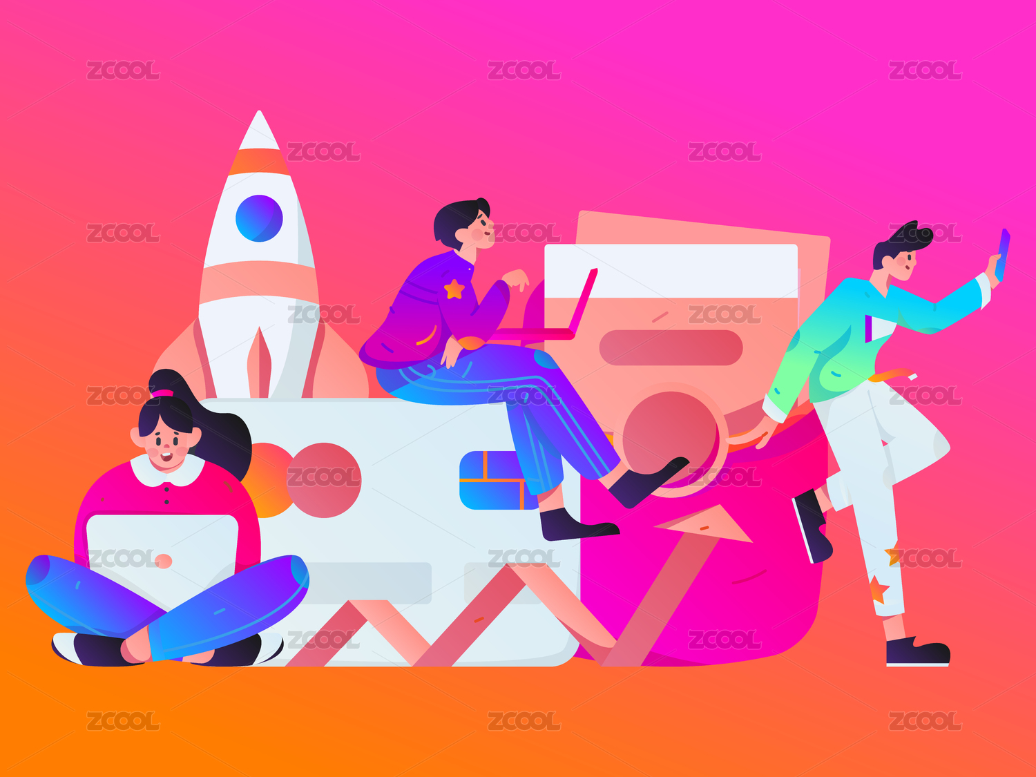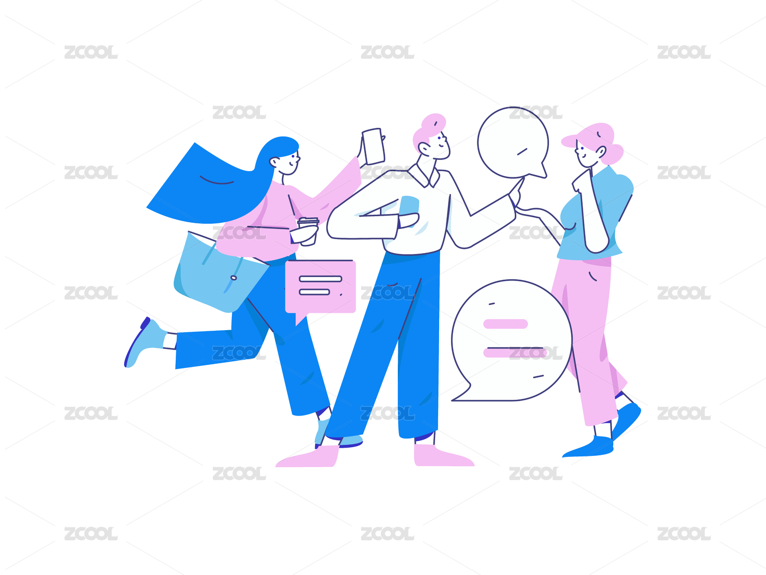 虚拟的人物社交沟通概念商业扁平矢量手绘插