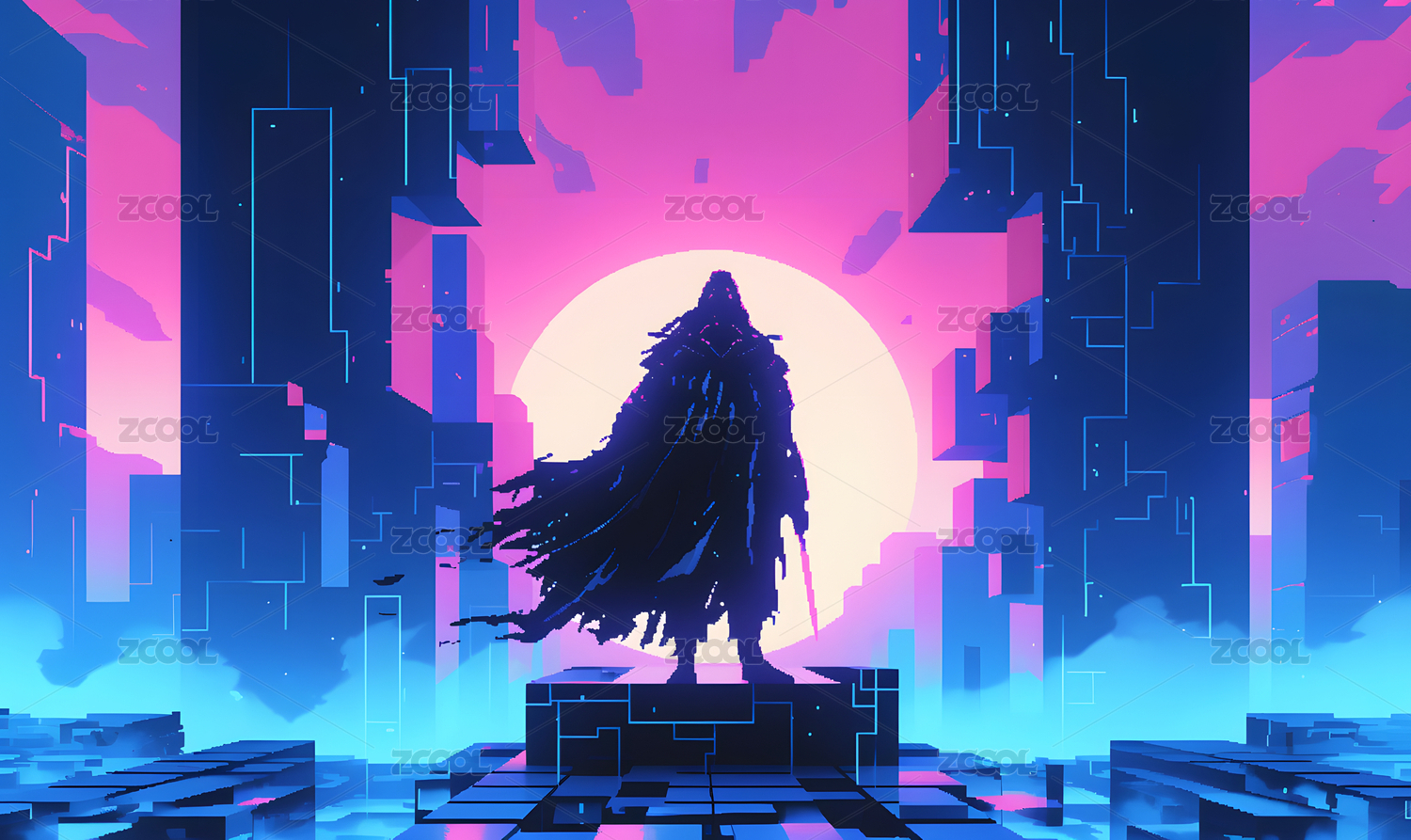 赛博朋克卡通插画背景