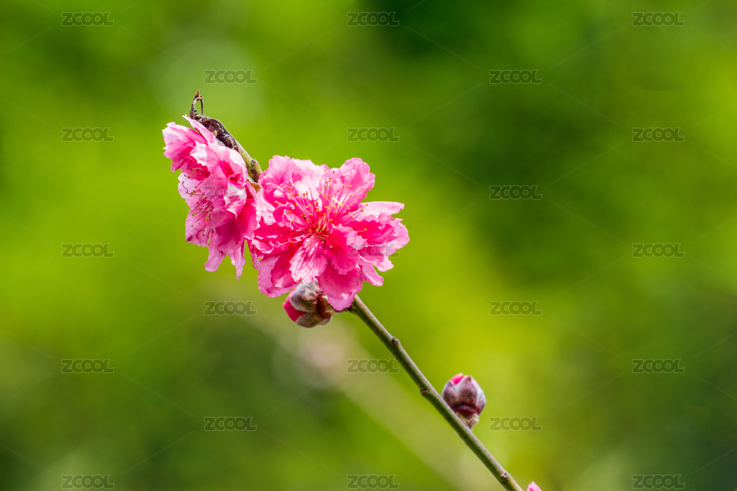 春天枝头上开得正艳的粉红桃花