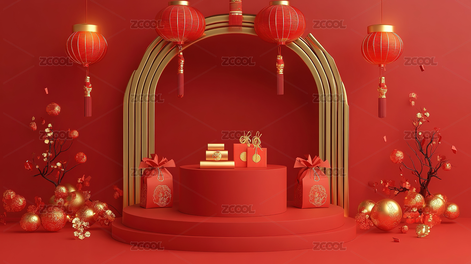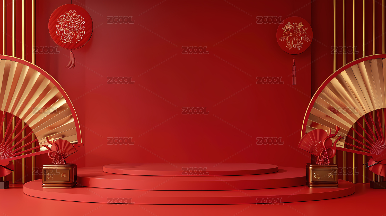3D简约中式红色电商购物产品展台背景