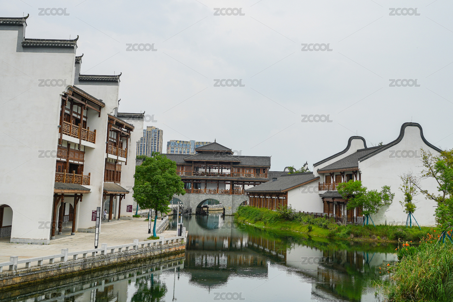 长沙洋湖水街中式园林建筑景观