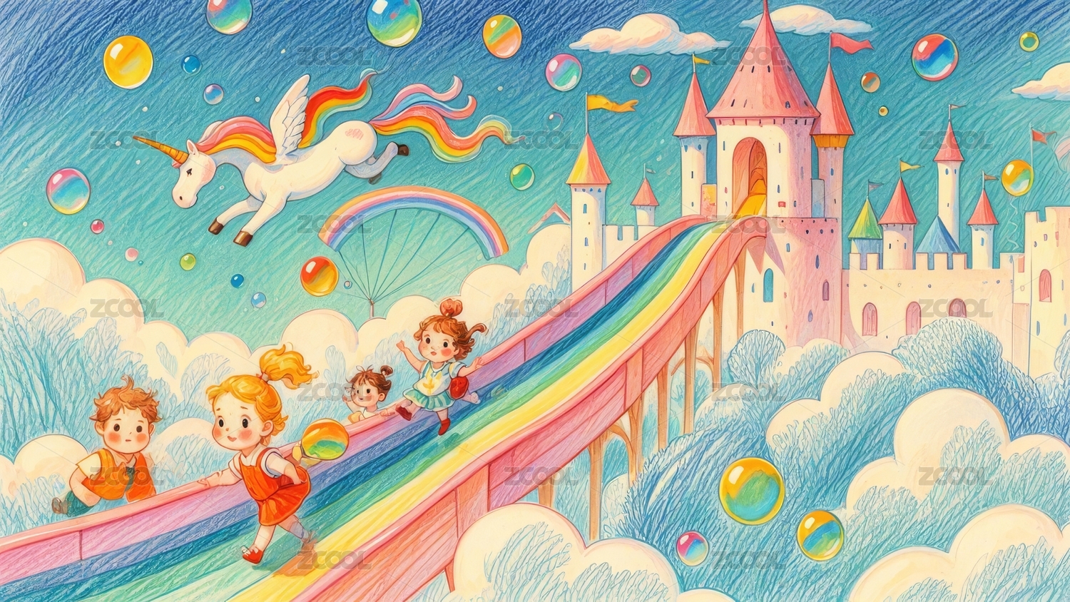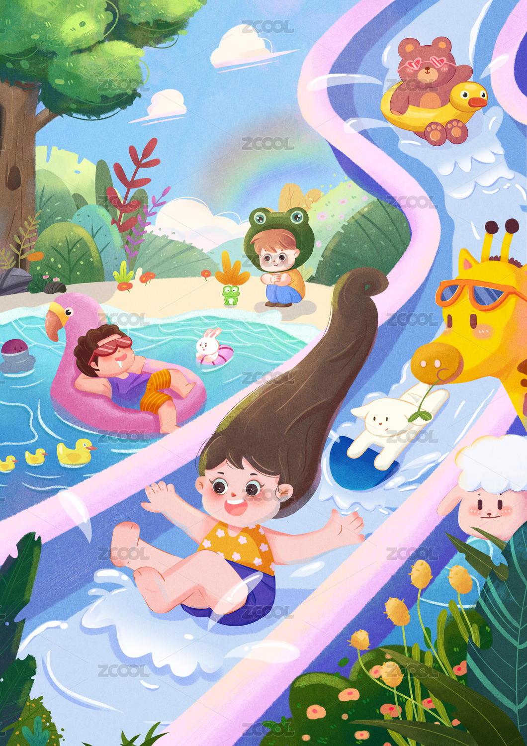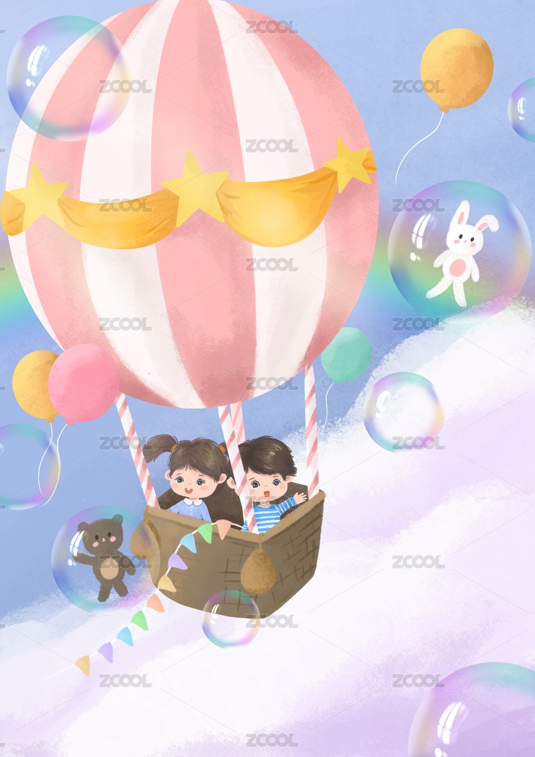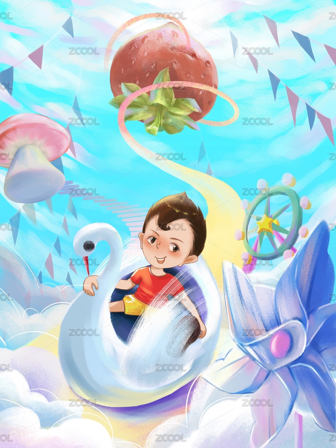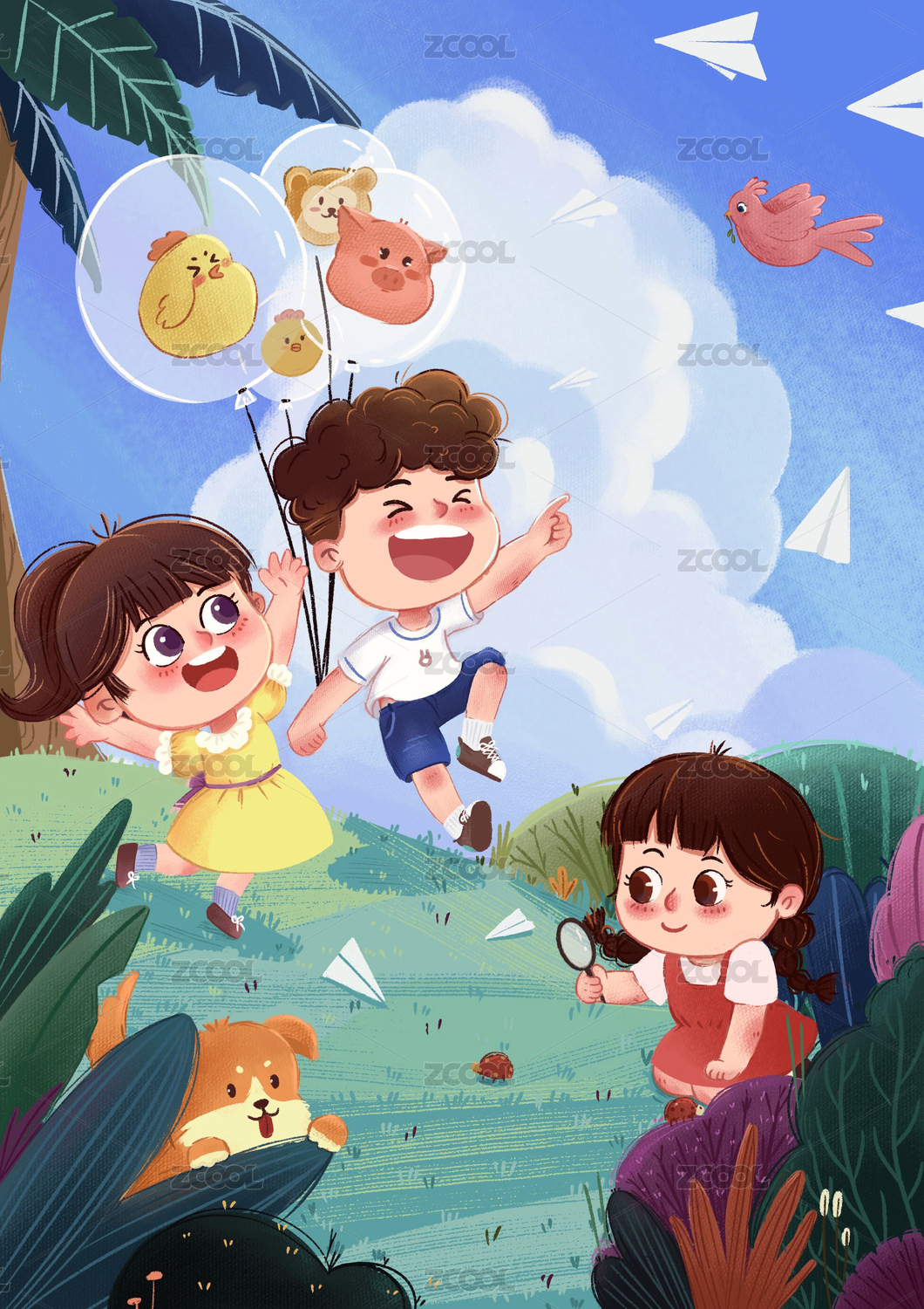 儿童节六一小朋友小孩子礼物插画玩耍梦想