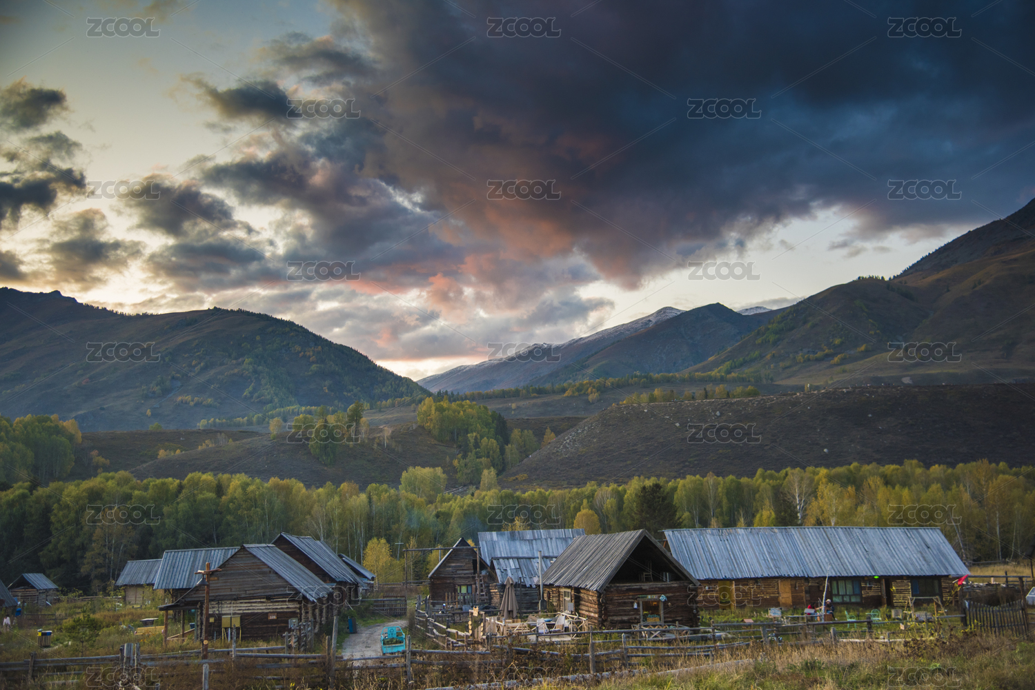 秋天,森林,木屋,禾木村,阿勒泰,新疆,旅游,自然,风光,风景