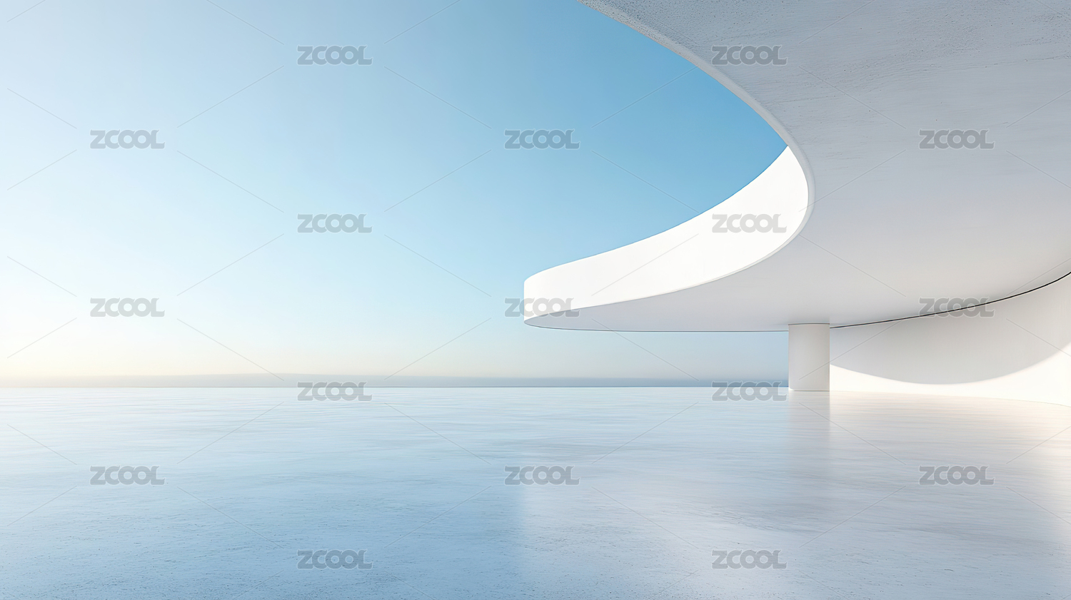 现代极简白色建筑三维空场景