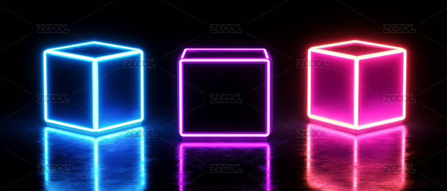 霓虹灯下的彩色立方体