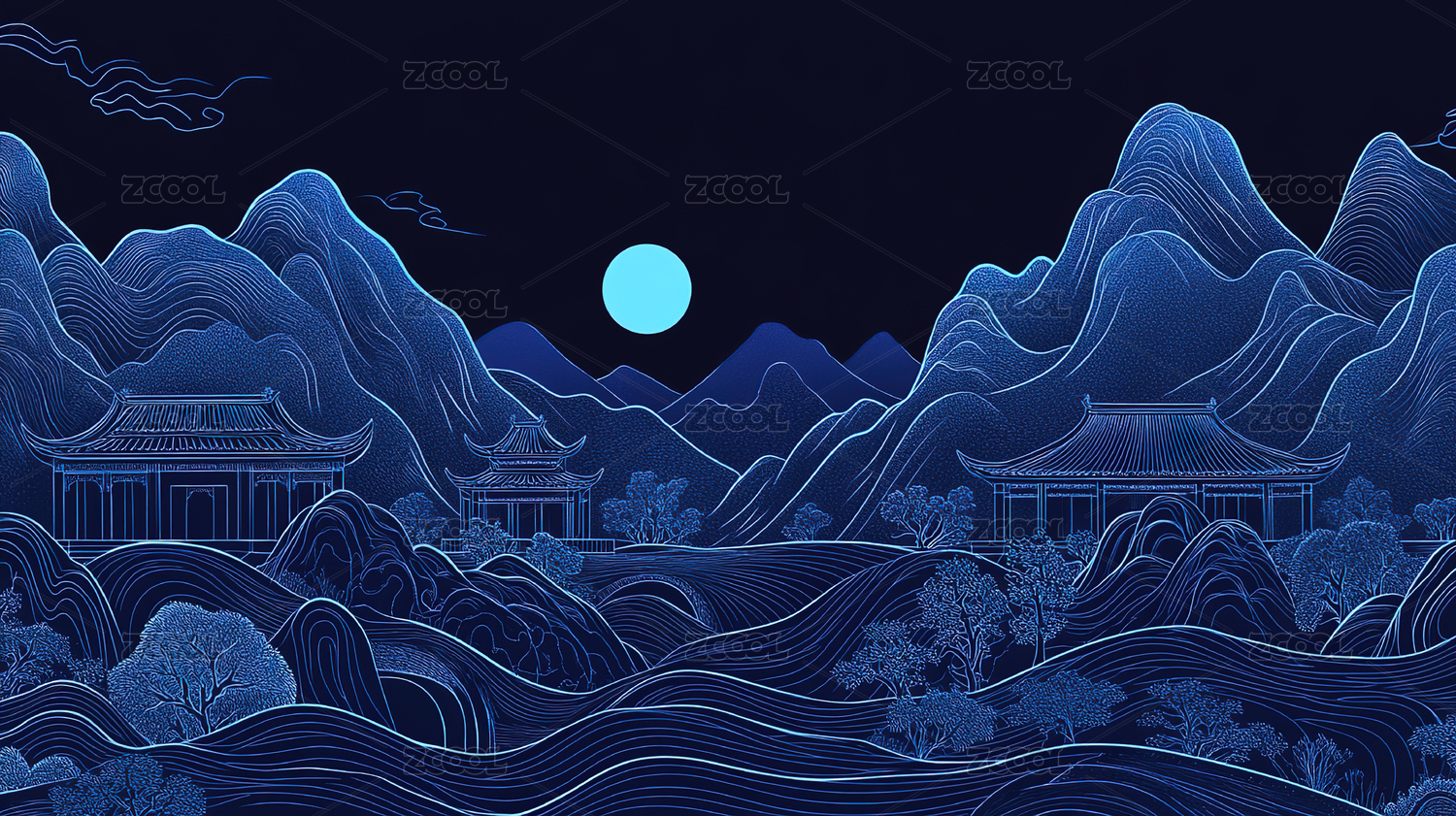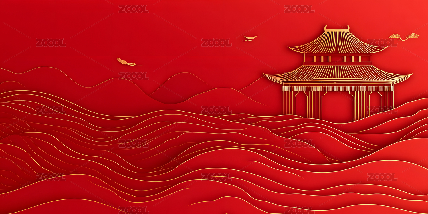 中国风古楼建筑传统国风古建筑国潮插画背景
