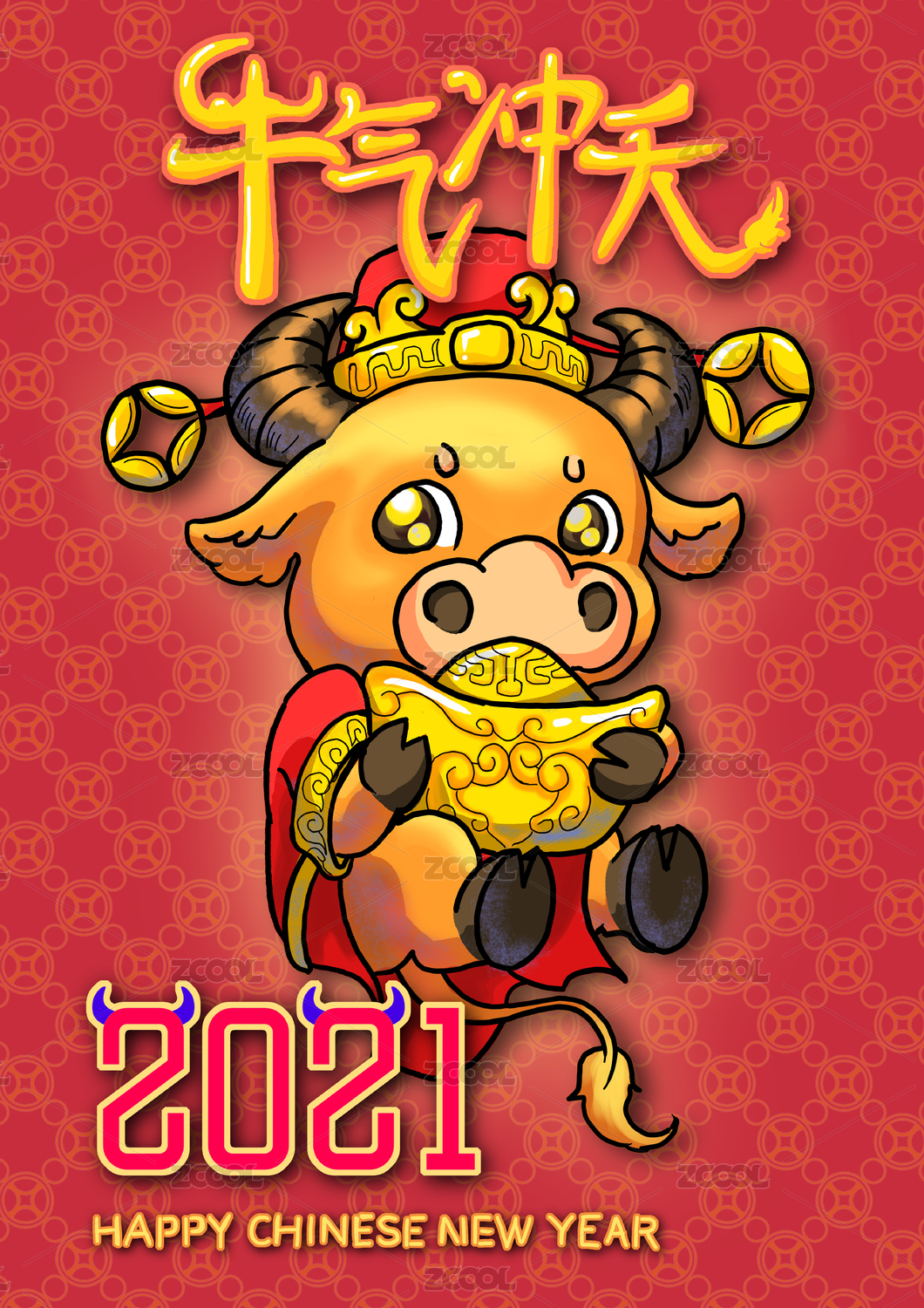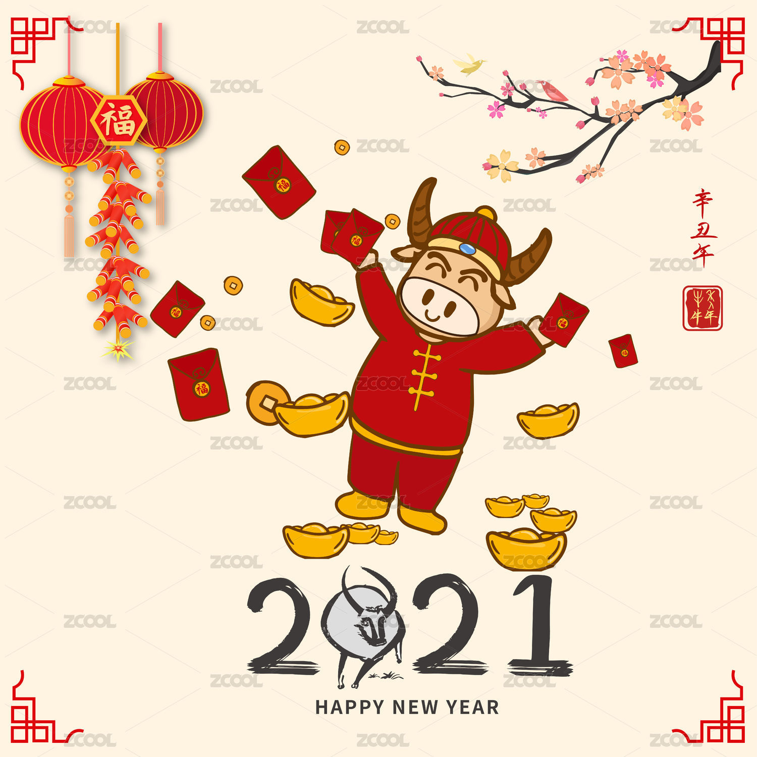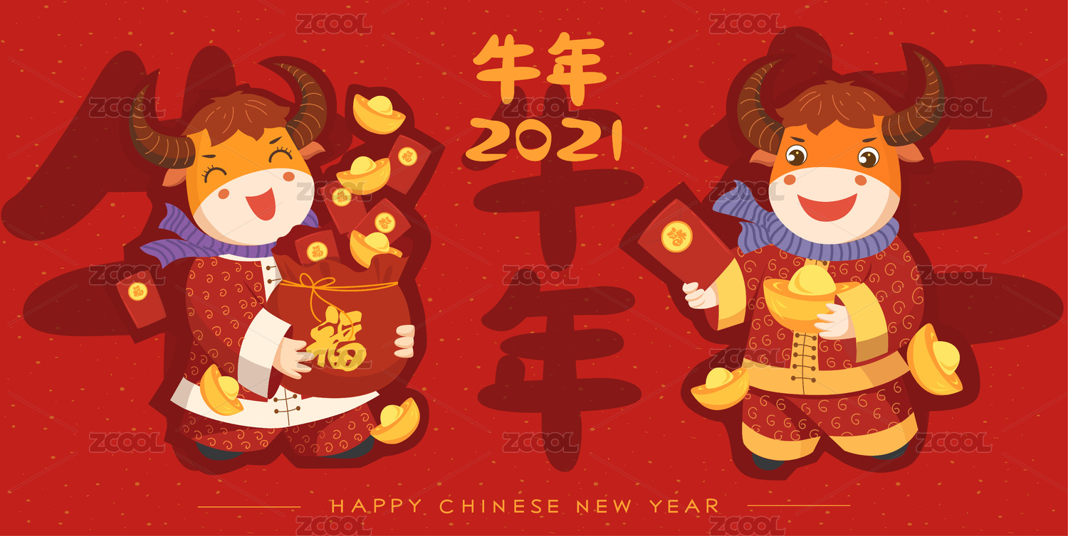 新年2021年牛年插画