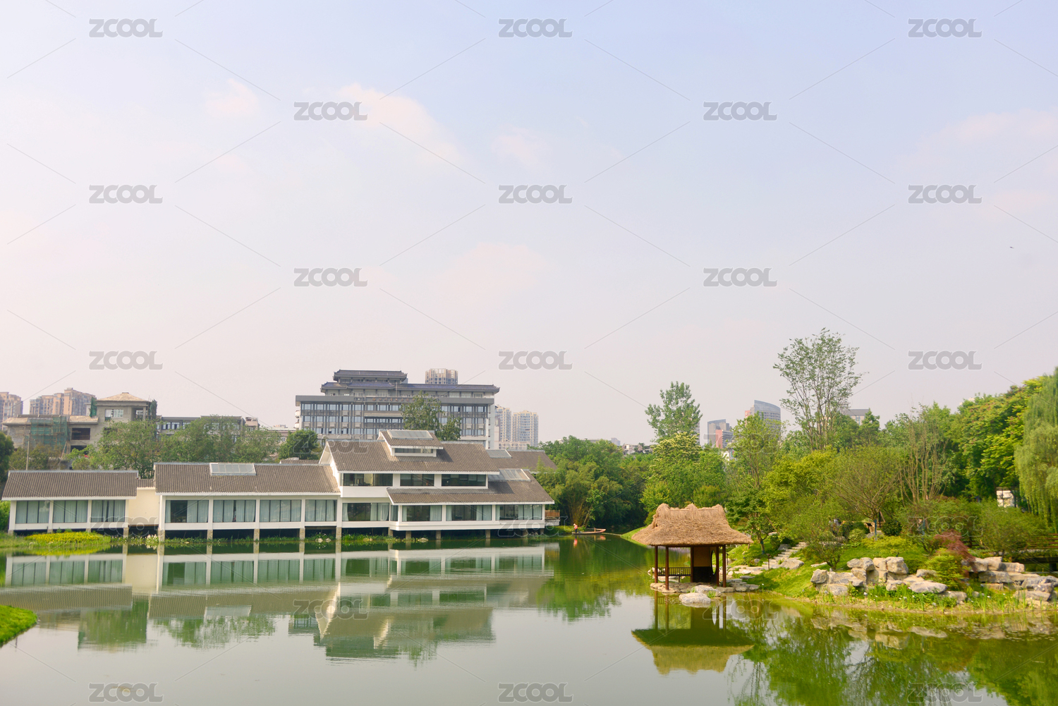 四川成都浣花溪公园景观湖及酒店宾馆建筑