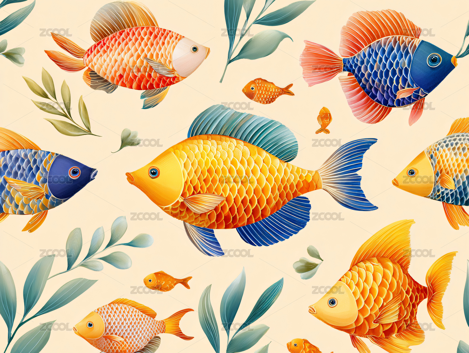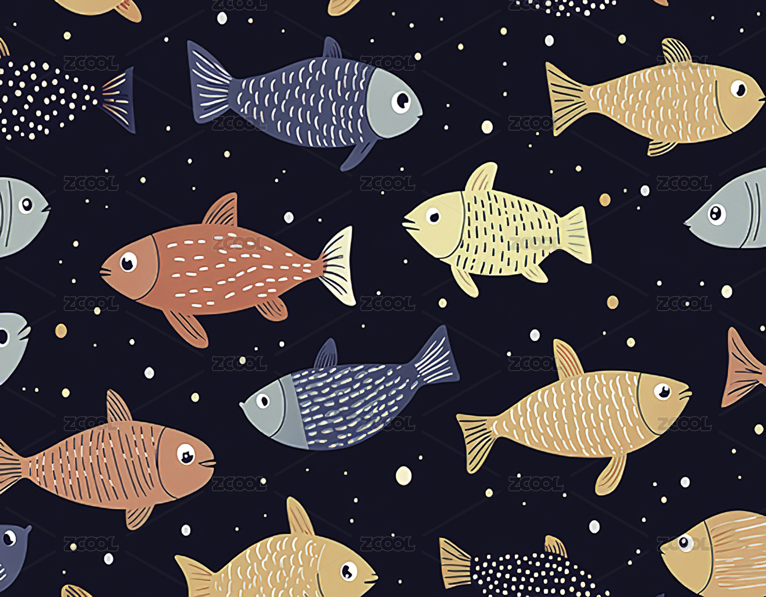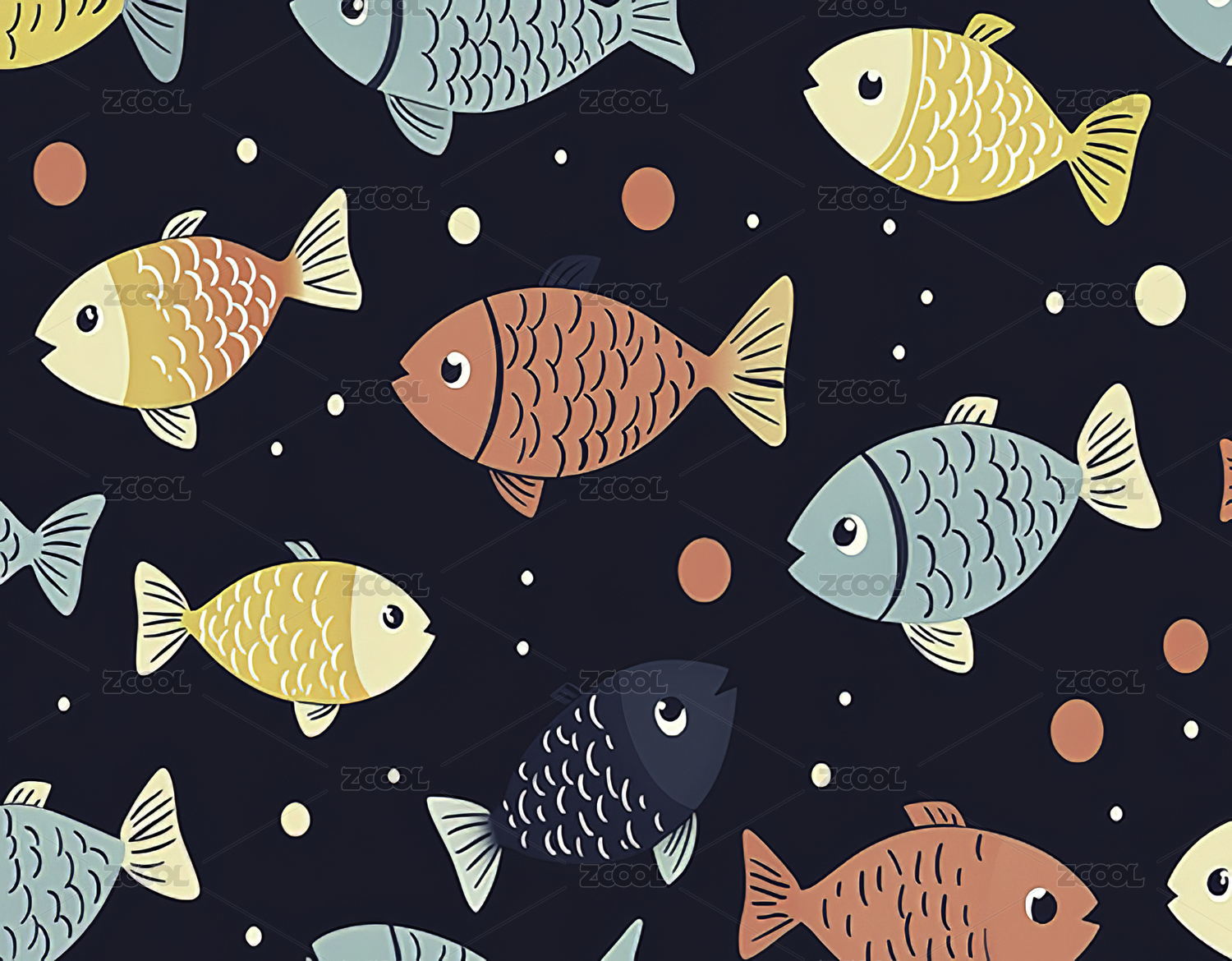 手绘卡通漂亮的鱼类元素花纹背景素材